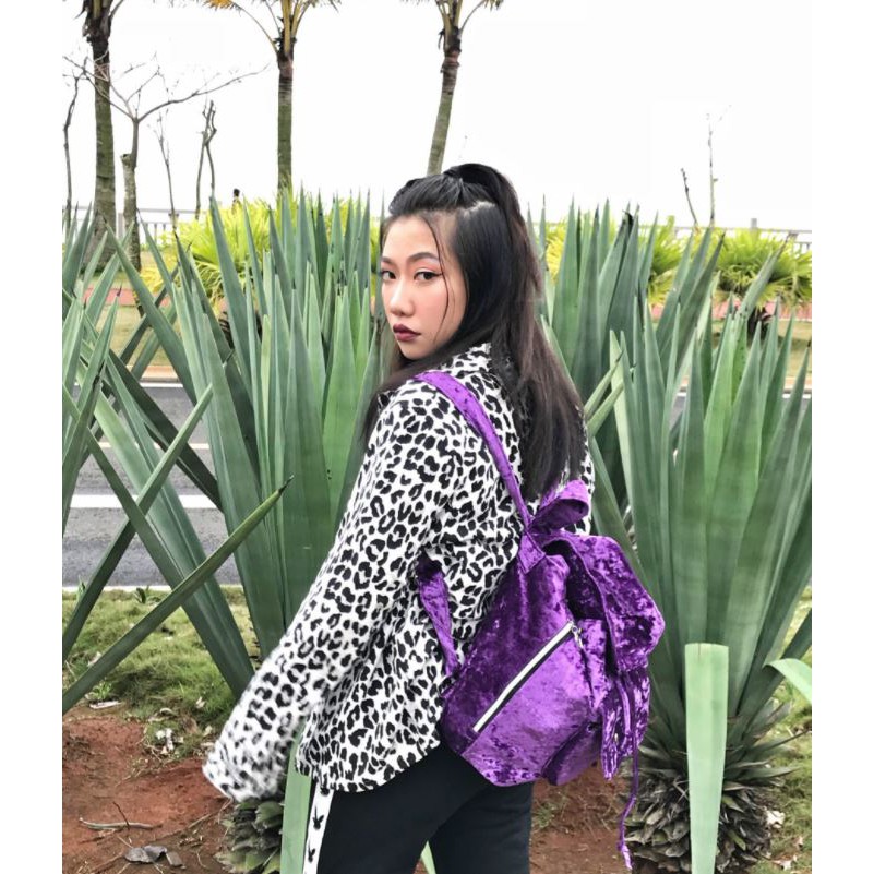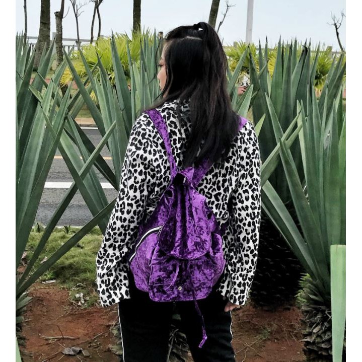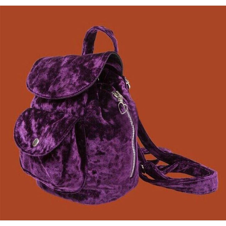 【黑殿】原宿潮流 紫外光電光紫絲絨後背包 愛心拉鍊雙肩包