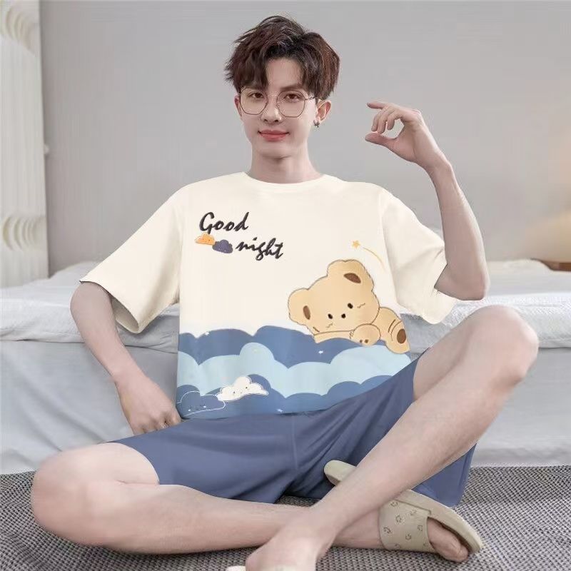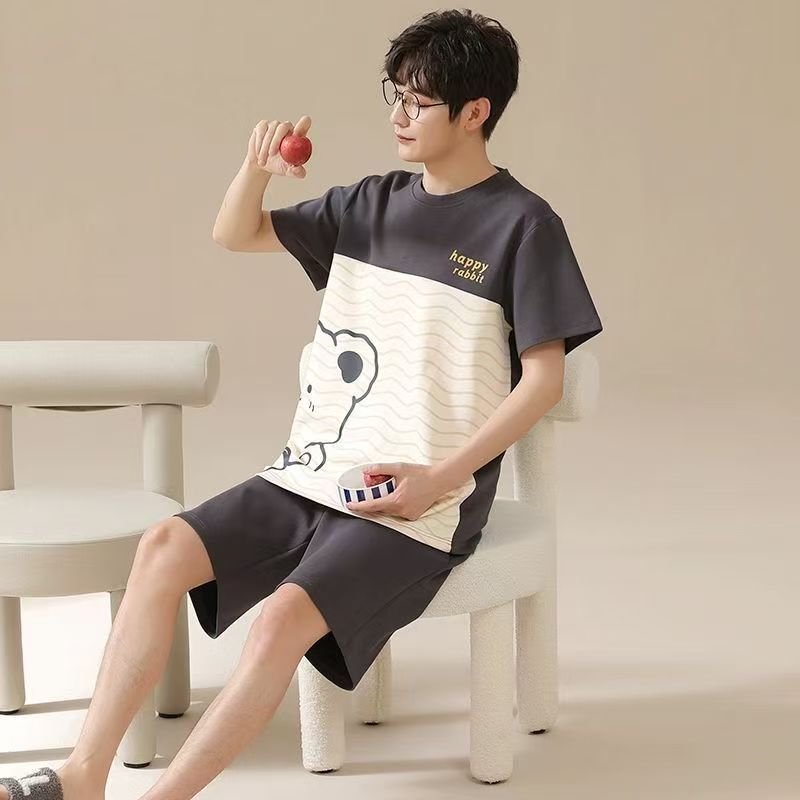 便宜套裝大碼睡衣男士夏天加大卡通夏季學生短袖短褲青少年家居服