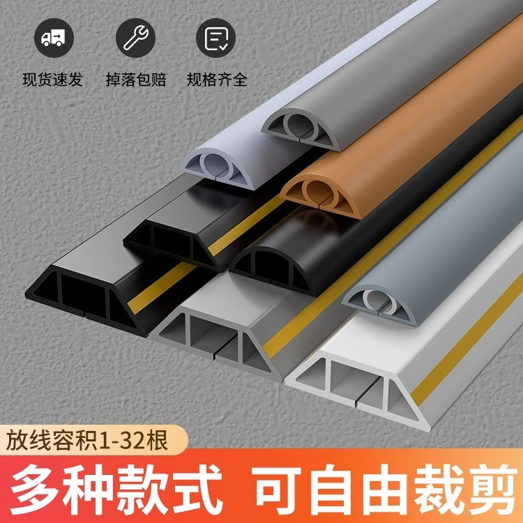 橡膠線槽 PVC軟膠線槽 地面走線 電線外露 遮醜 地板配線槽 自黏地面扁壓線條 隱藏電線 明管防踩遮醜神器