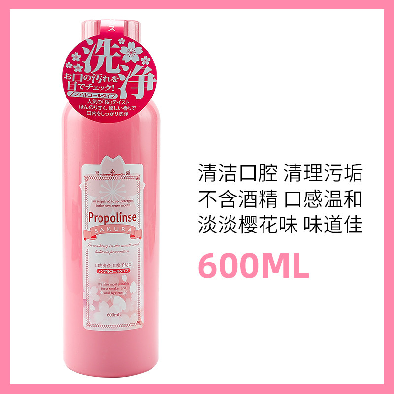 日本Propolinse王菲同款女士比那氏蜂膠漱口櫻花漱口水美白600ml