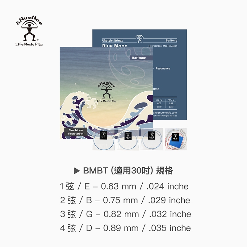 aNueNue 烏克配件 藍月亮弦|烏克麗麗琴弦 21吋/23吋/26吋/30吋 藍色氟碳纖維 低音弦 彩虹人官方旗艦店