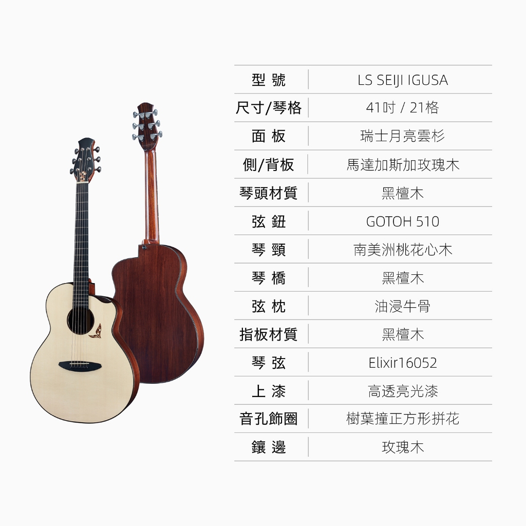 aNueNue✕Seiji Igusa|41吋木吉他 全單板瑞士月亮雲杉+印度玫瑰木 音樂人聯名 彩虹人官方旗艦店