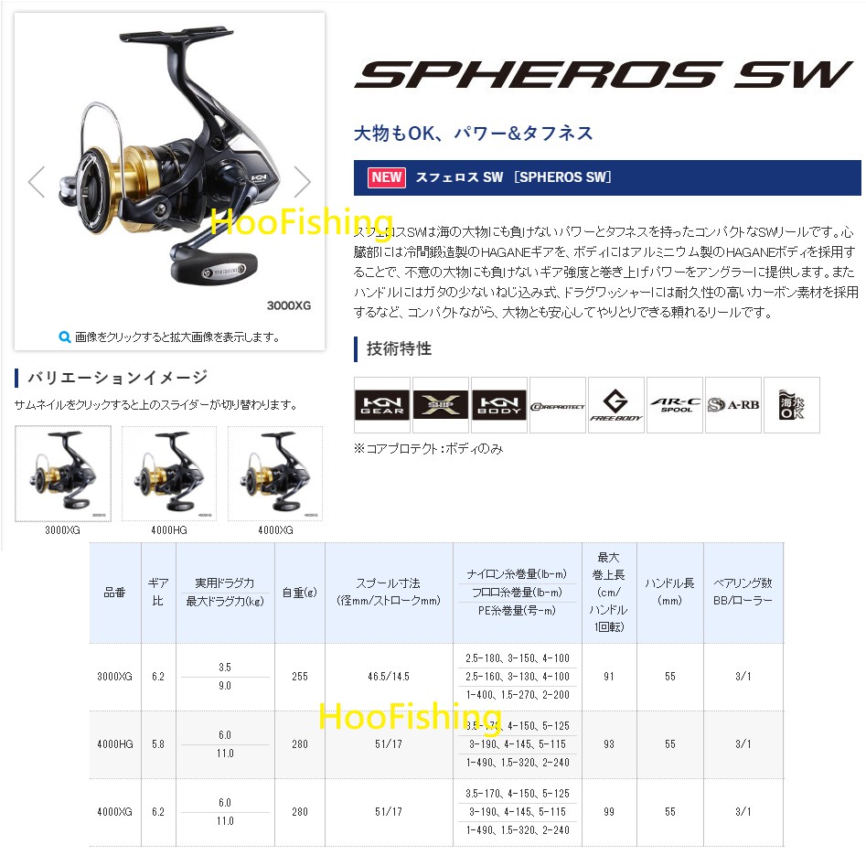 SHIMANO SPHEROS捲線器SW4000型/SW3000型