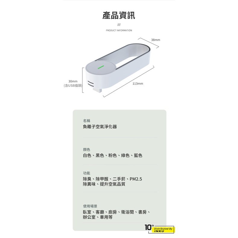 ibits 負離子空氣清淨機 USB供電 除臭除甲醛 輕巧便攜車用辦公浴室