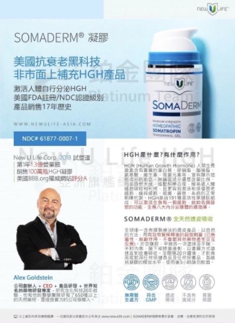 NEWULIFE 美國HGH凝膠 SOMADERM 美國正品公司貨 免運費