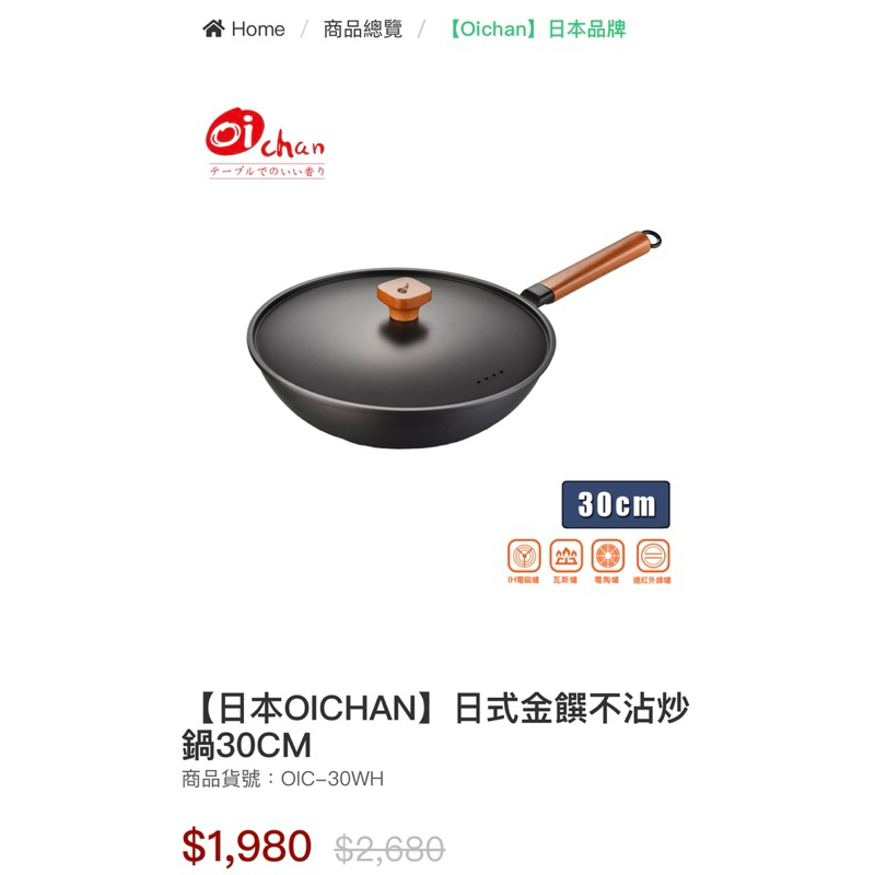 (全新)(降價)日本OICHAN日式金饌不沾炒鍋30cm