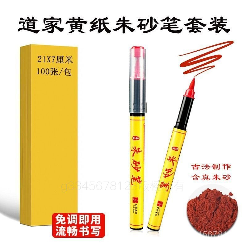 🙏最新日期過爐開光🙏 硃砂筆含硃砂液道家書法抄寫紅墨開禮點睛符畵毛筆黃紙喜字水彩筆