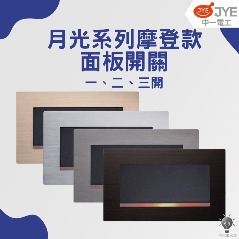 「自己來水電」附發票 JYE中一電工 面板開關 月光系列摩登款 一開 二開 三開