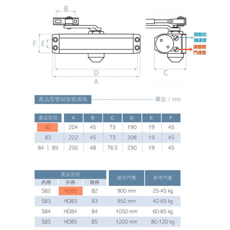 自動關門器 自動閉門器 外停檔 垂直安裝 HO82/83/84承重20-120kg 油壓器《昇瑋五金》