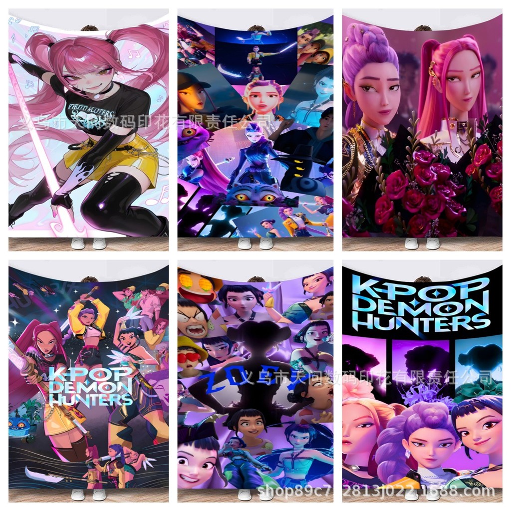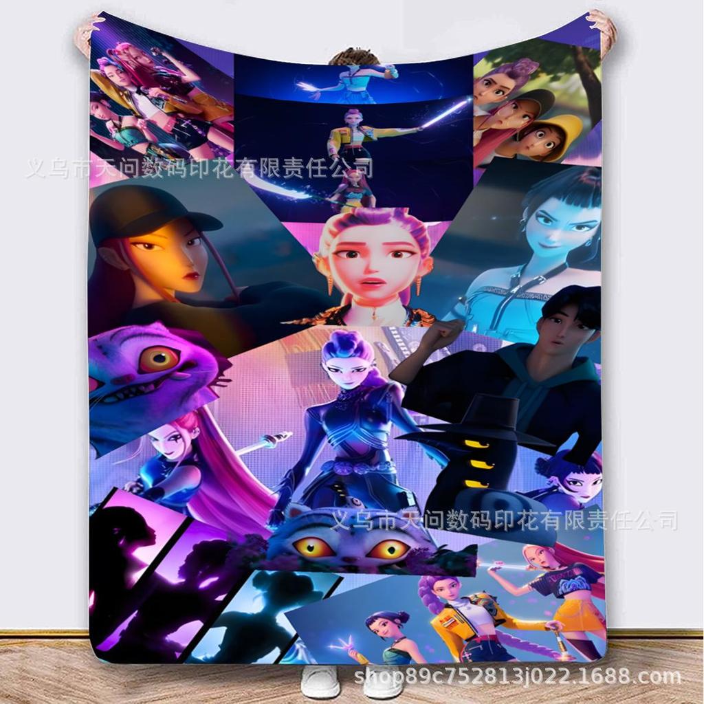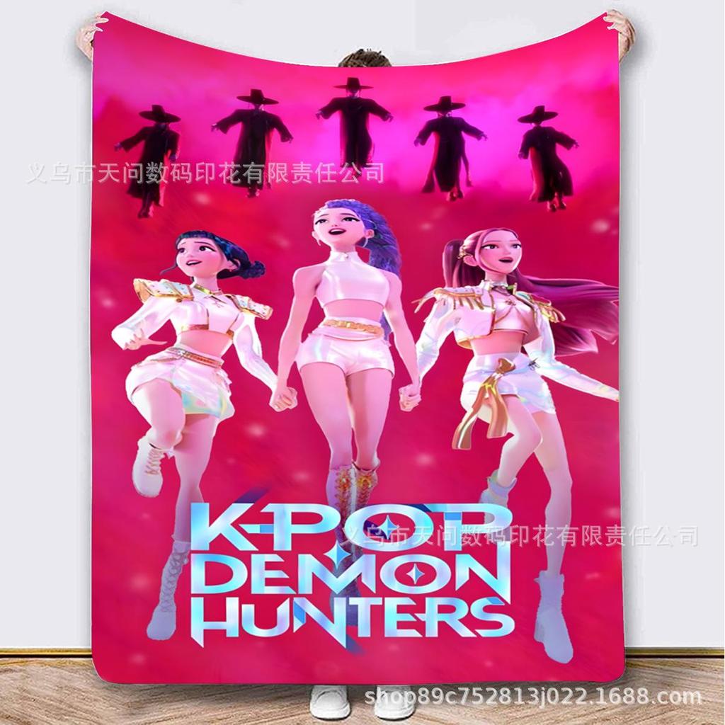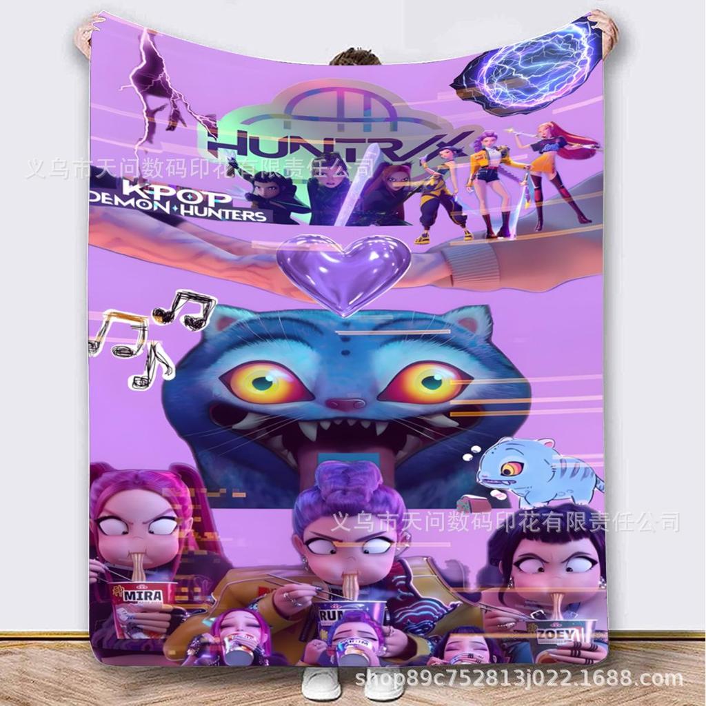 Kpop demon hunters速賣通熱款 希音temu K-POP 獵魔女團法蘭絨毛毯午休毯