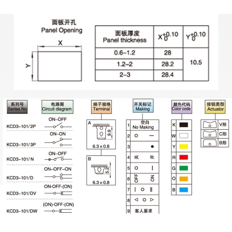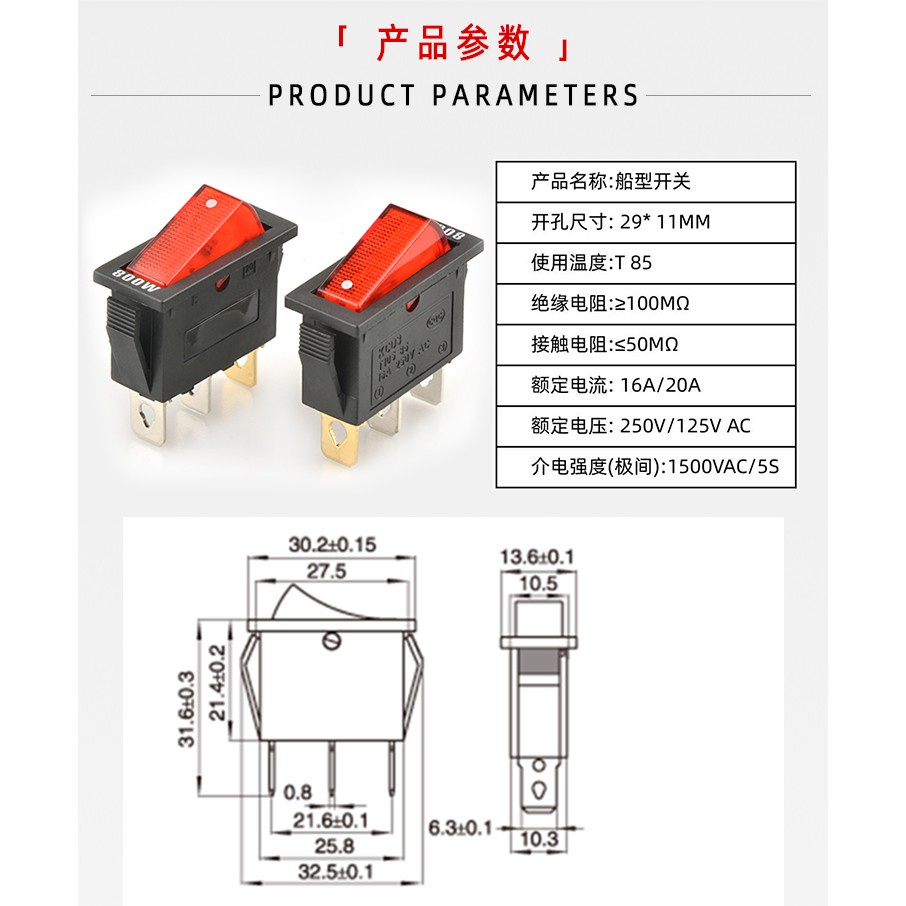 KCD3船型開關 29*11mm 2腳 3腳 2檔 3檔 紅色 白色 黑色 綠色 藍色 黃色 800W~4000W
