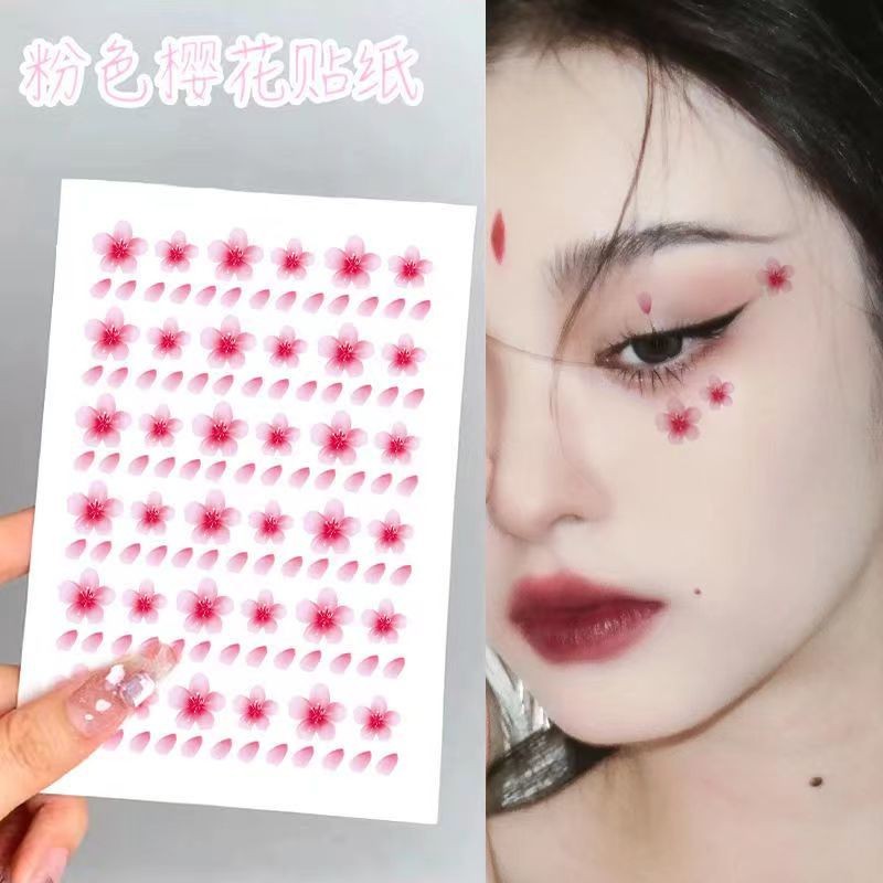 🔥桃園現款/免運🔥額頭貼花臉貼飾品櫻花貼舞臺妝眉心花鈿紙麵部桃花妝臉部化妝貼臉