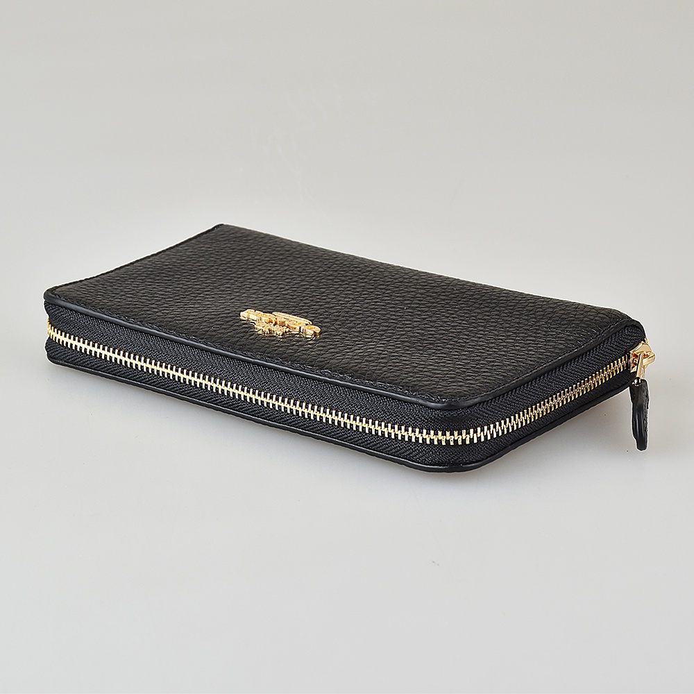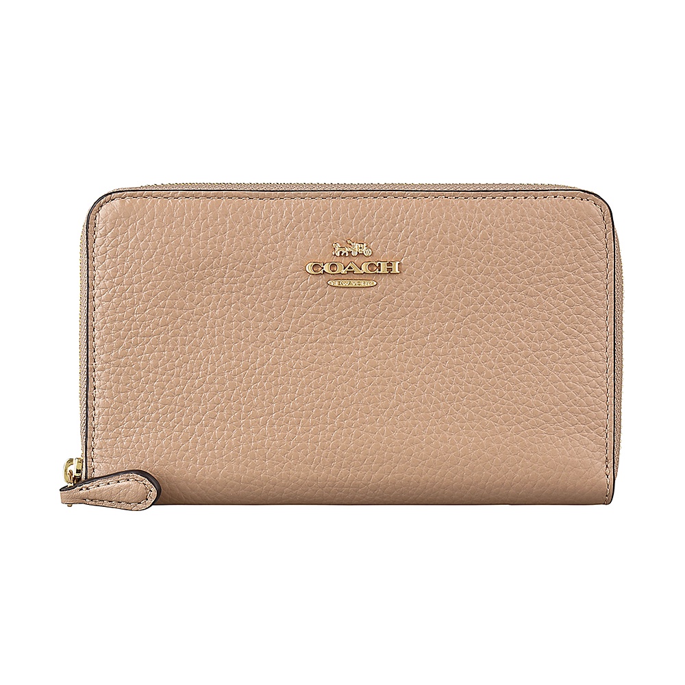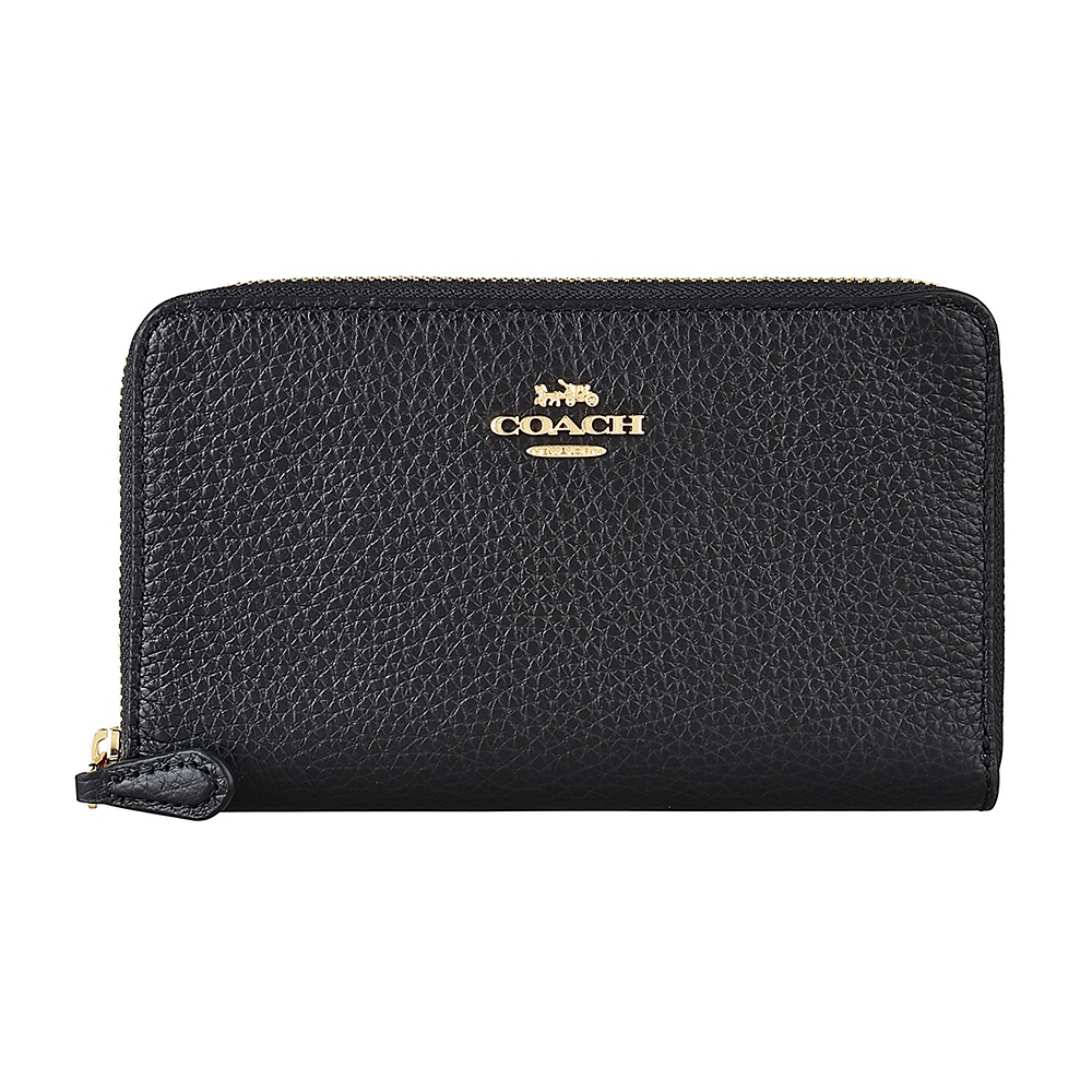 COACH金字LOGO荔枝紋牛皮8卡拉鏈中夾(二色)