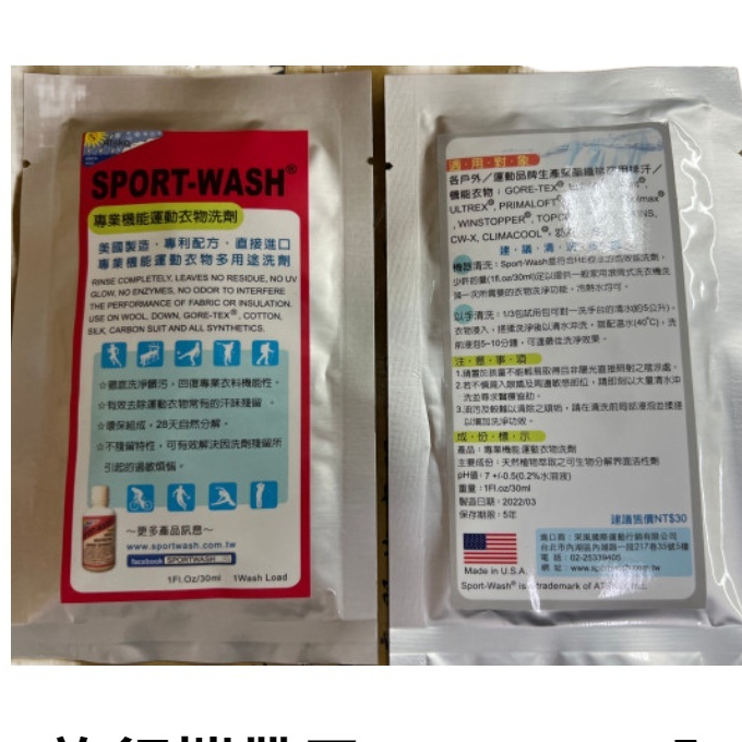 【Sport Wash】運動洗衣30MLX3入 機能衣物洗衣精 洗衣劑 洗衣包 gore-tex專用洗劑運動洗衣精
