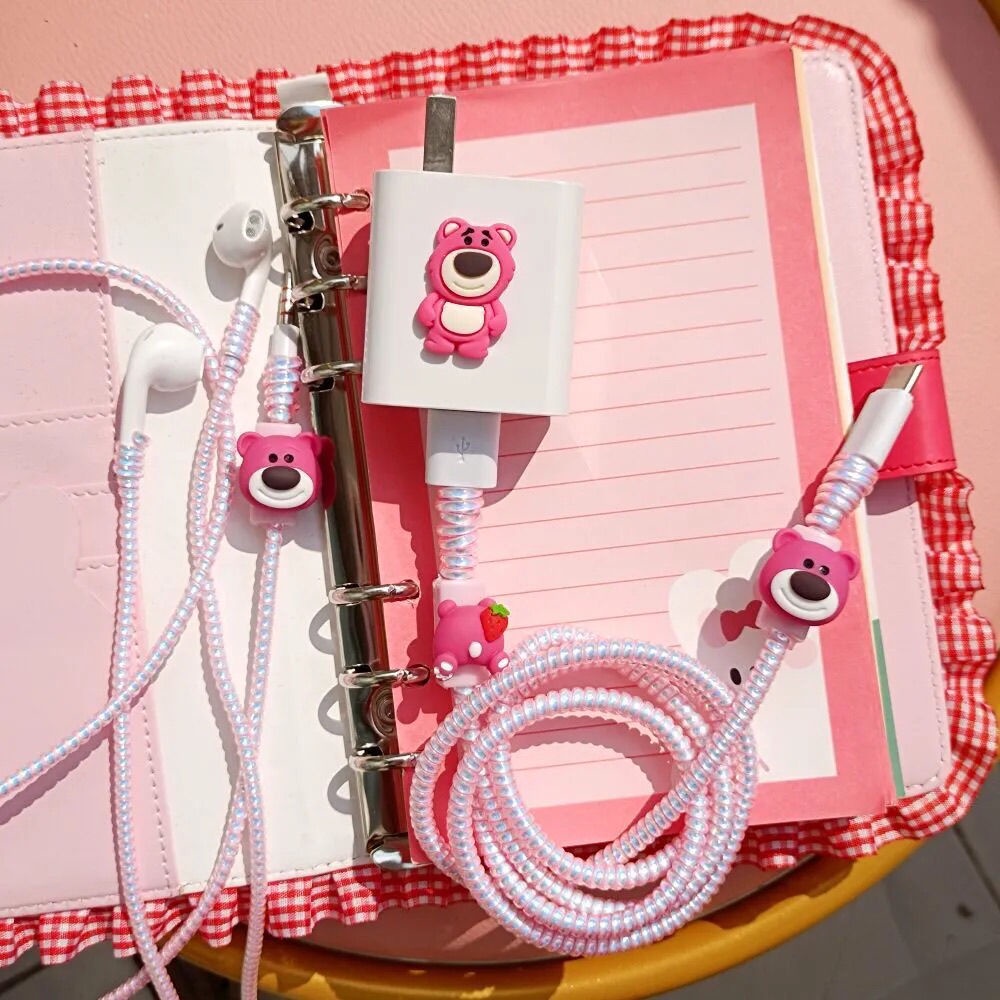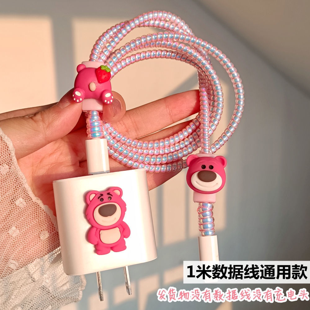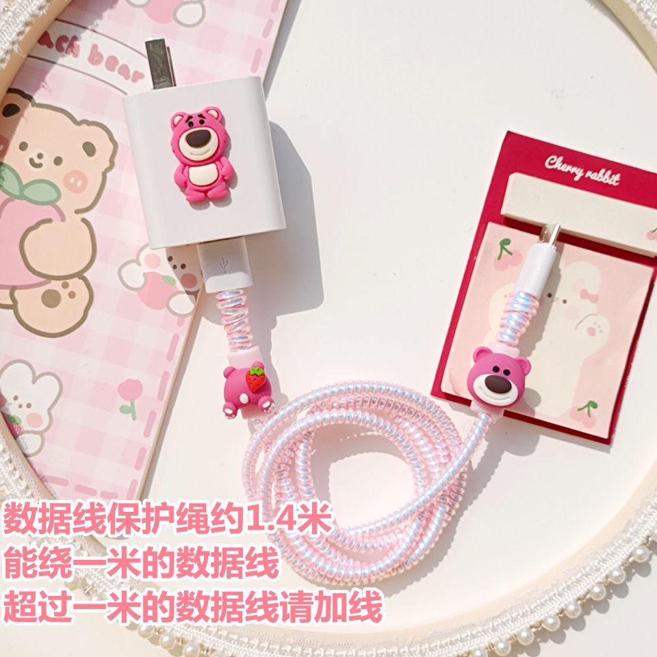 【🔥台灣現🔥限時秒殺卡通充電器保護套】#草莓熊數據線保護套萬能繞線器防折適用OPPO卡通vivo蘋果華為小米