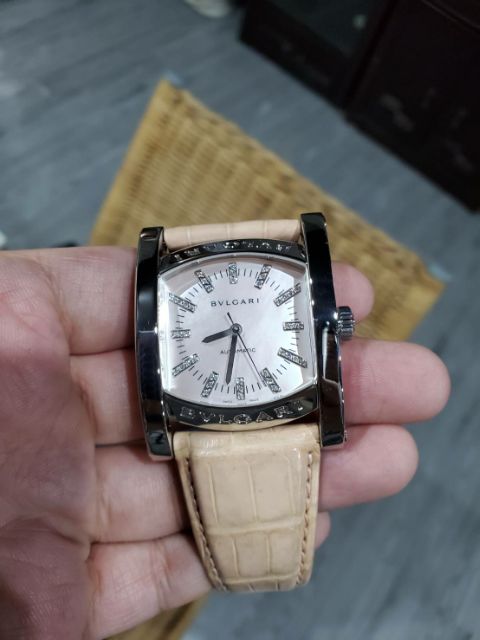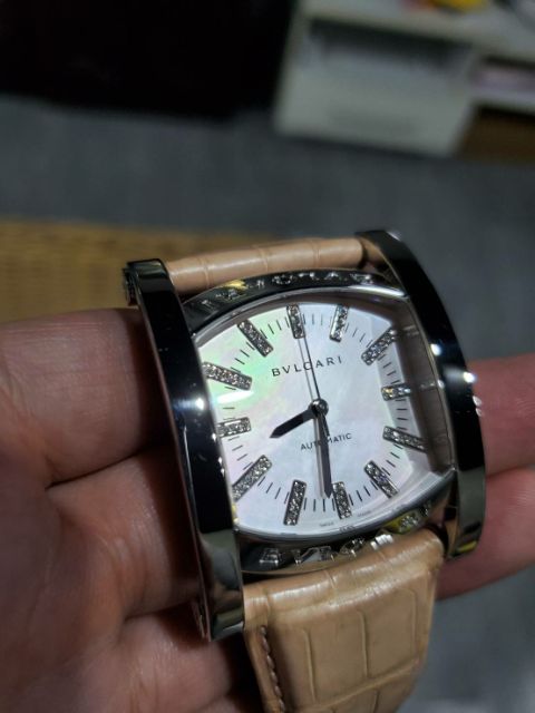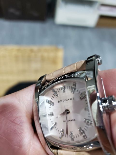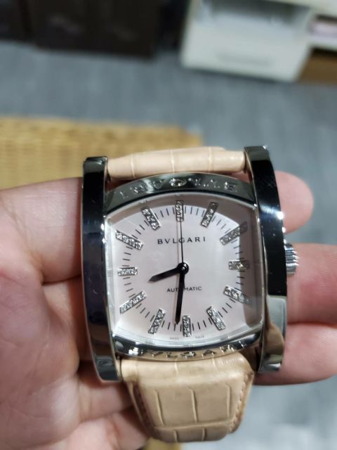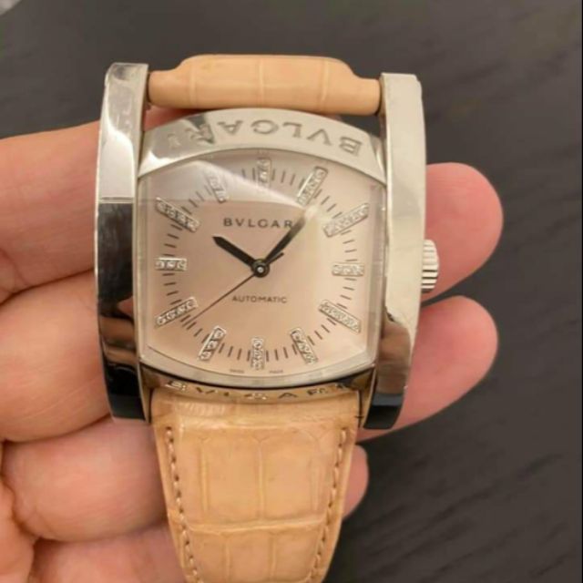 寶格麗 Assioma系列 淡粉色 鑲鑽時標 Bvlgari 原鑲 自動上鍊 真皮 女錶