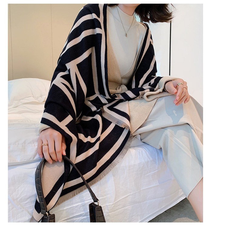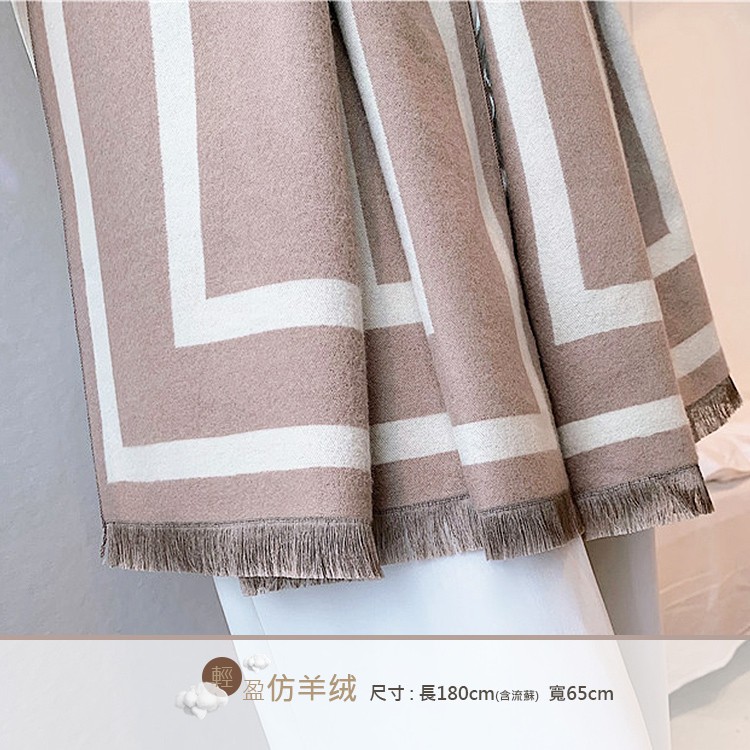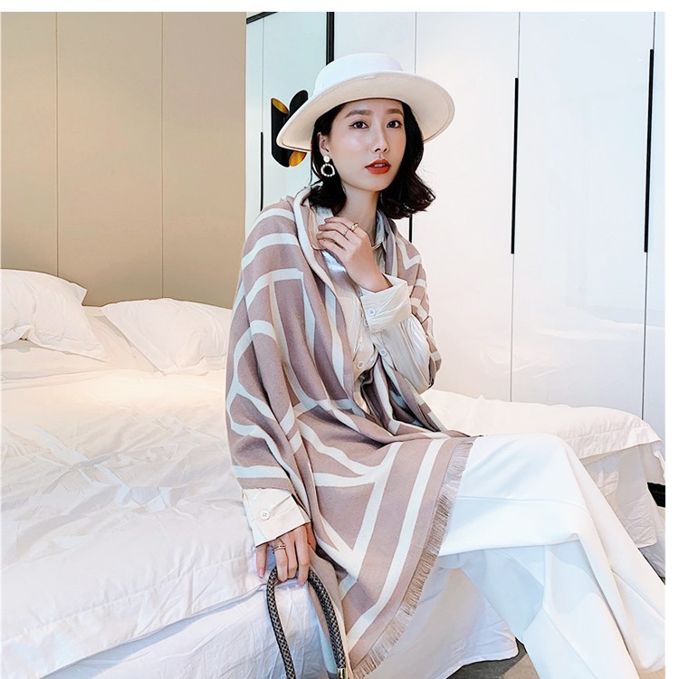 【Billgo】韓版幾何圖形羊絨披肩圍巾 歐美大牌感磨毛絨面長型披肩-2色【Q19012】