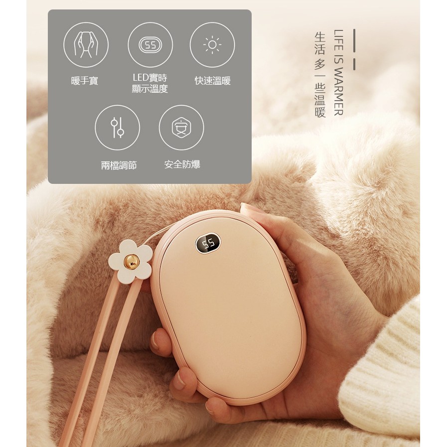 鶯花暖手寶 數顯溫度 暖手寶 雙面發熱 交換禮物 長效續航 5秒速熱 電子暖暖包 兩檔調溫 保暖 寒流 必備✺