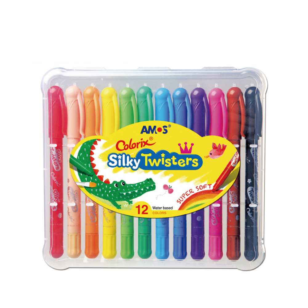【AMOS 阿摩司】韓國原裝 細款12色無毐可水洗蠟筆(旋轉蠟筆 台灣總代理公司貨)