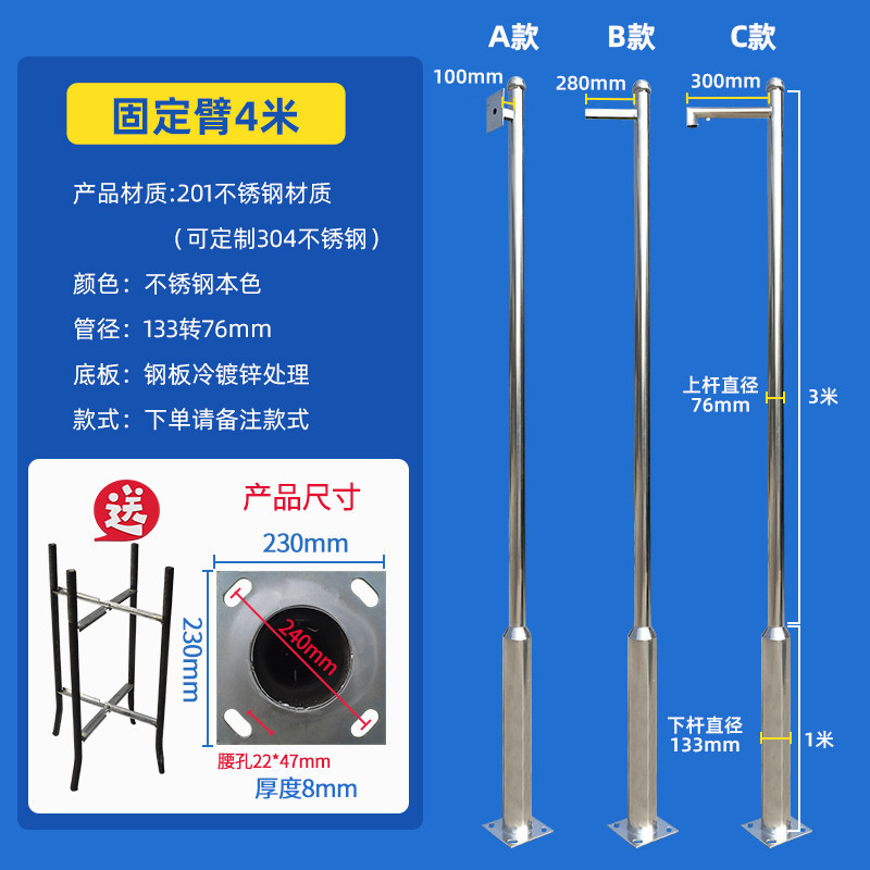 優選#不銹鋼立桿3米3.5米機立柱2米戶外立桿桿支架室外6米 不含運