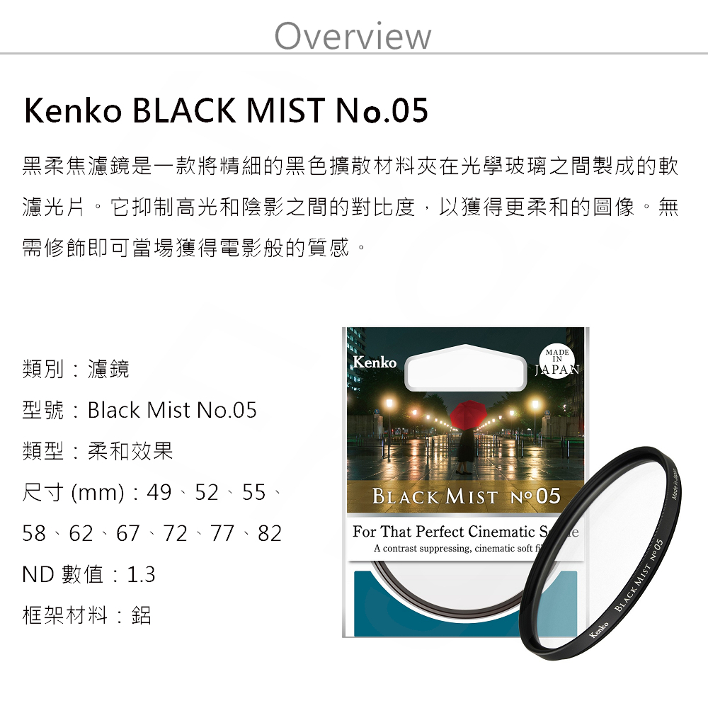 恩崎科技 Kenko Black Mist No.05 黑柔焦 鏡片 濾鏡 日本製 公司貨 多口徑可選