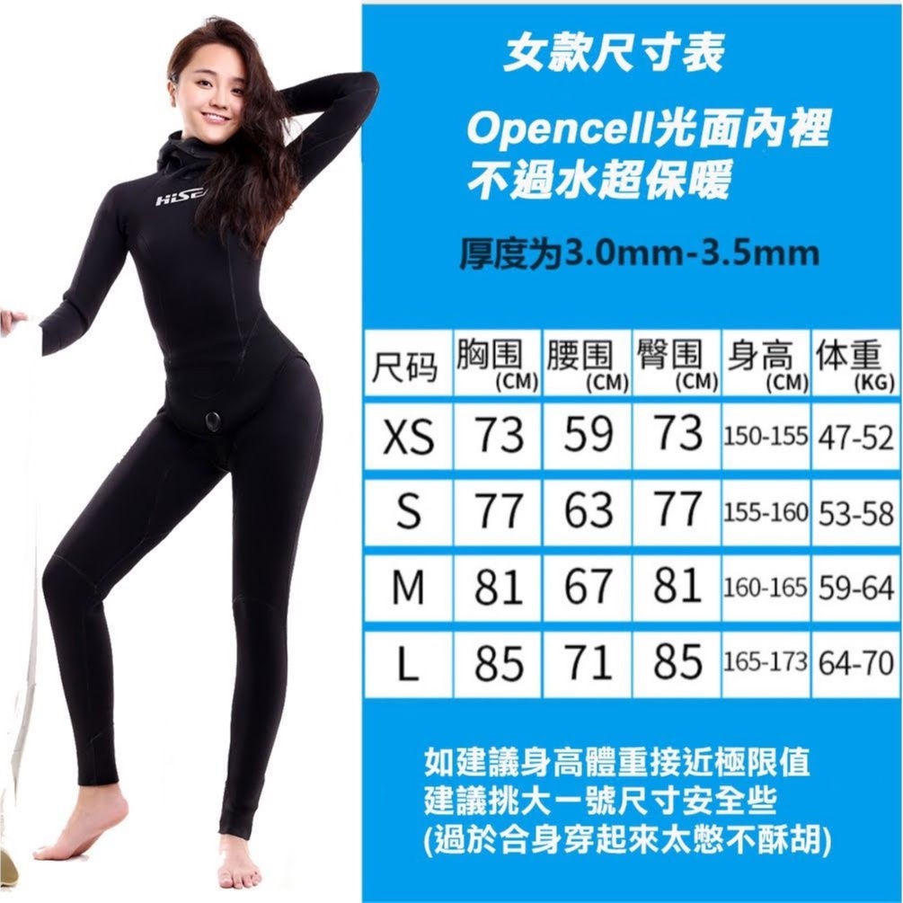 Hisea 3mm 女款兩件式防寒衣 (隔日到貨) open cell材質 自潛防寒衣 自由潛水防寒衣 腰身明顯防寒