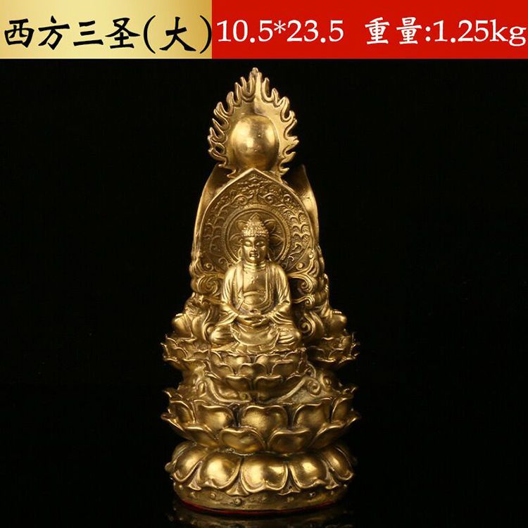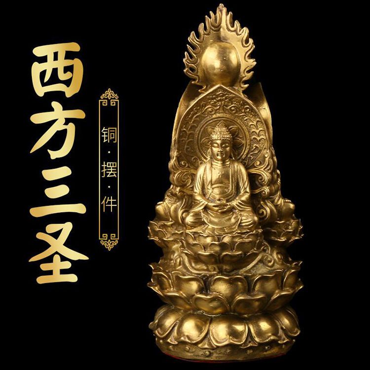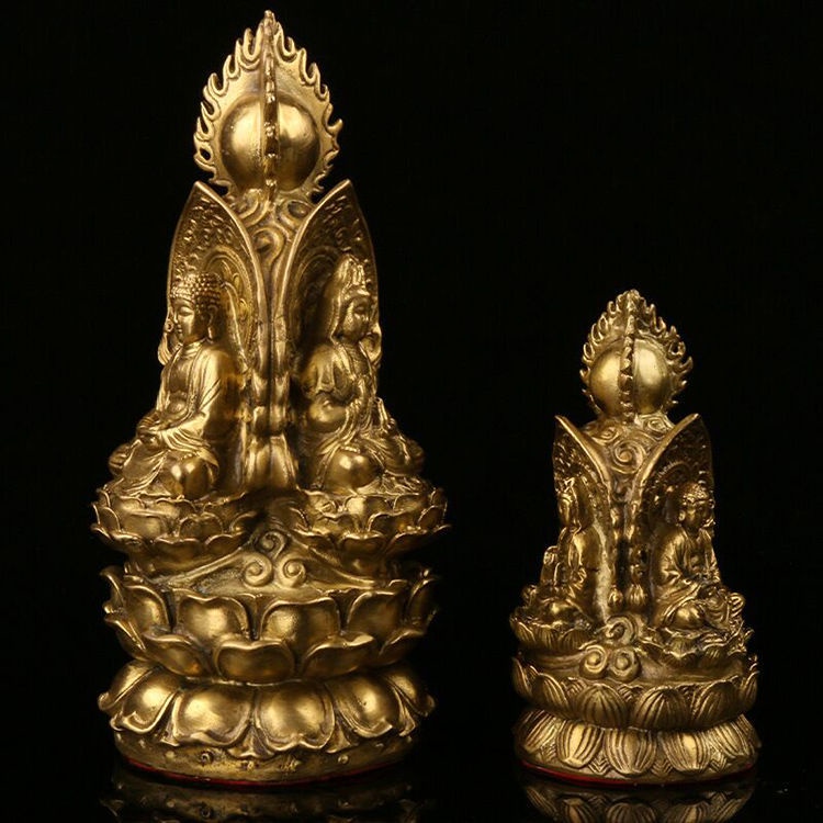 🌟優品*上新🌟純銅三面佛擺件家用客廳供奉神像三面佛如來觀音地藏三圣佛像