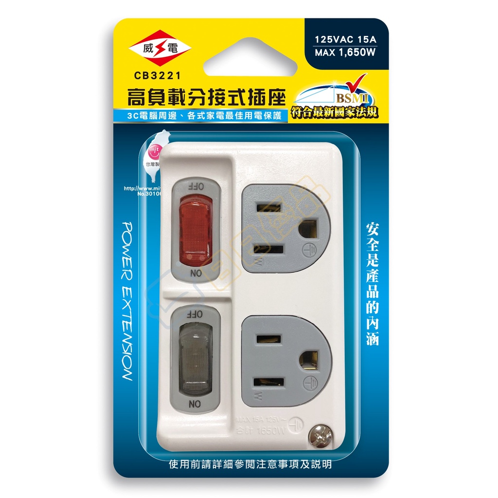 威電 3孔轉2孔轉接器 1開1插 2開2插 壁插 分接式插座 最新安規 過載防護 插座 轉接器 飛利浦 台灣製