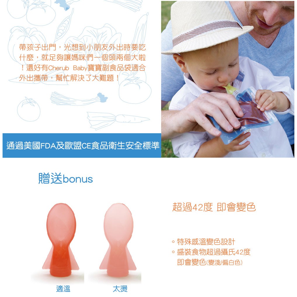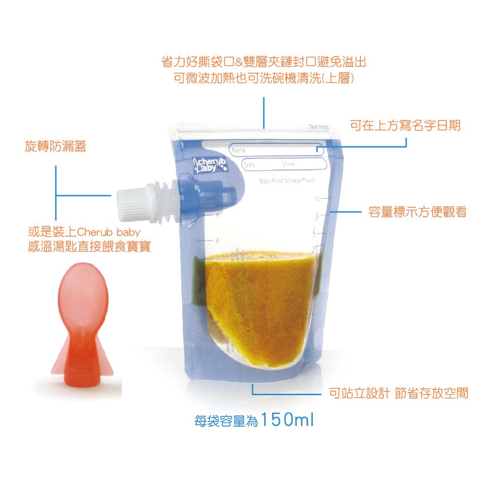 澳洲 Cherub Baby 寶寶副食品袋 (10入+感溫湯匙)