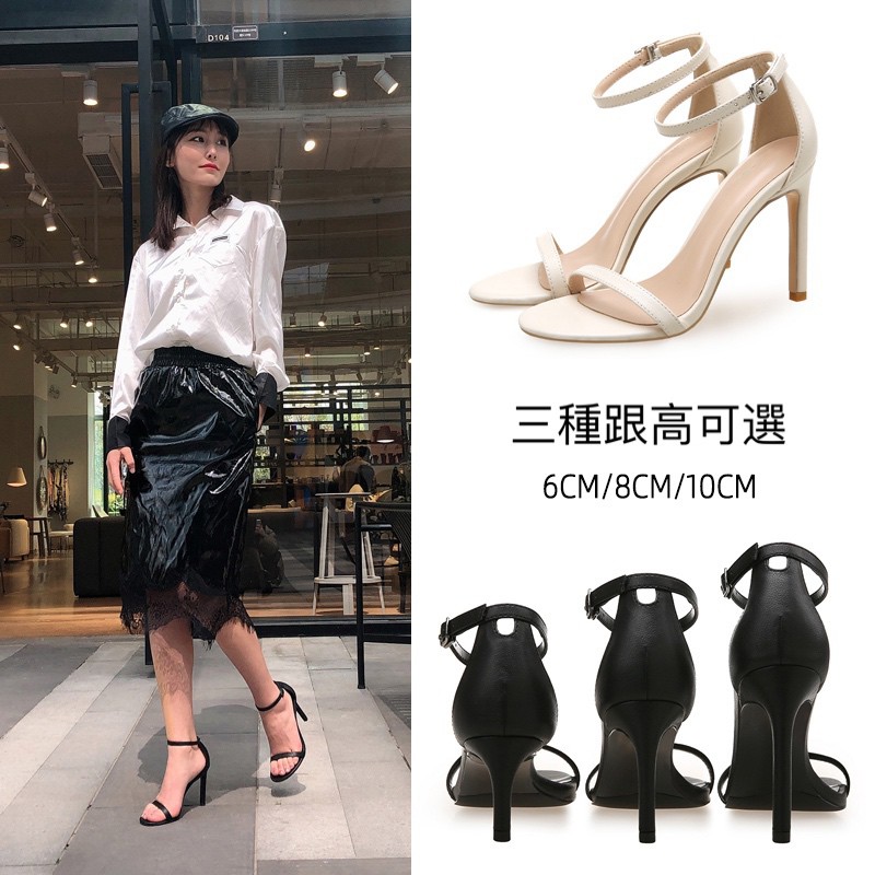 【現貨牛皮款33-40】 高跟涼鞋 細跟 一字帶涼鞋 露趾 真皮 細跟涼鞋 性感高跟鞋 涼鞋女 皮面簡約夜店百搭涼鞋