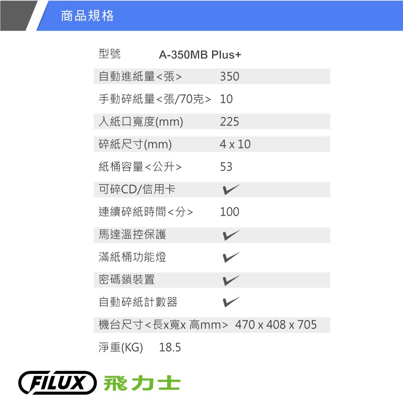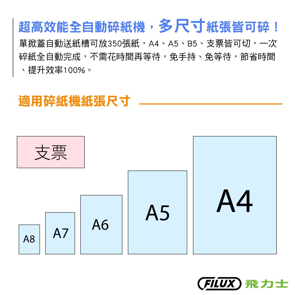 FILUX 飛力士 免手持免等待350張全自動碎紙機 A-350MB Plus [原廠]