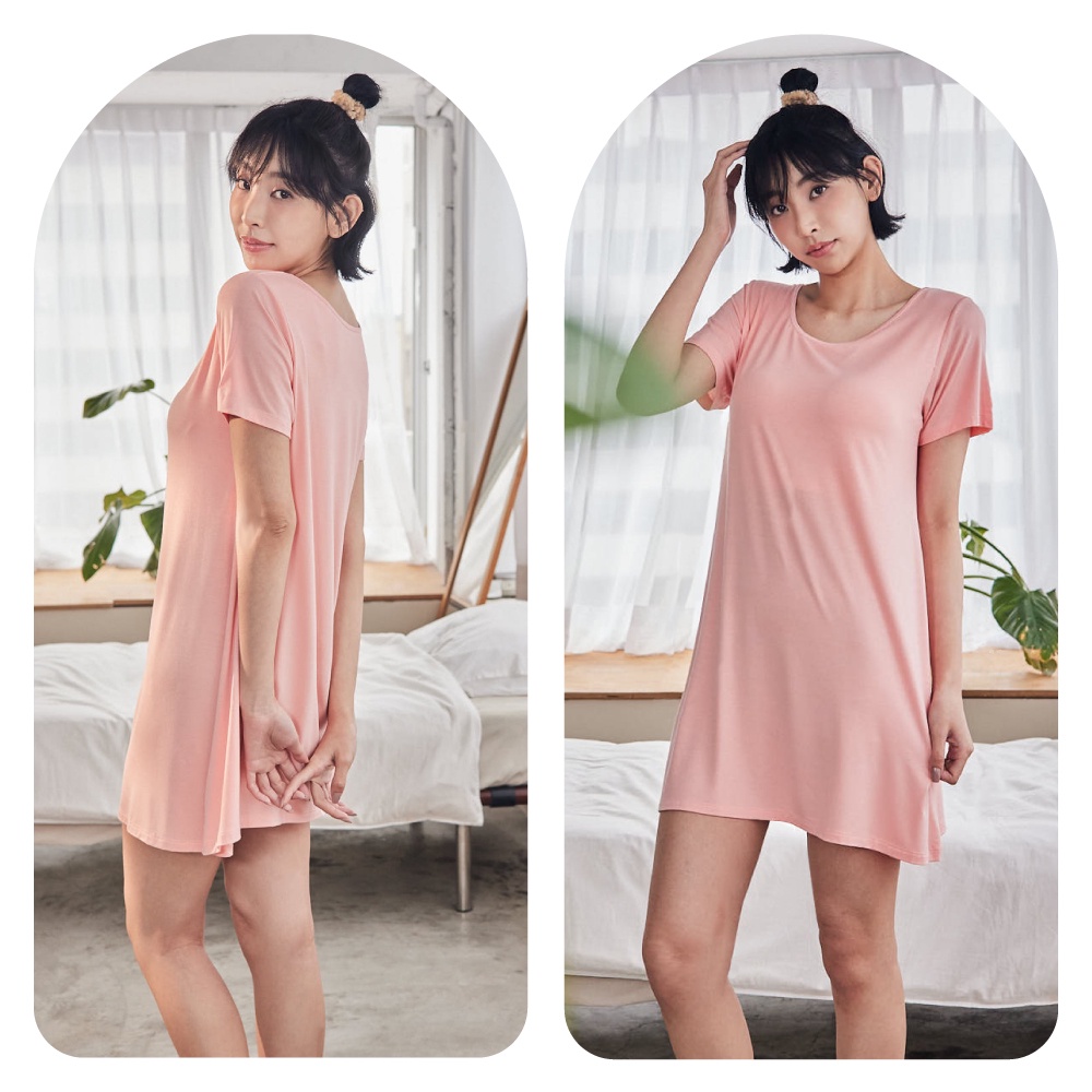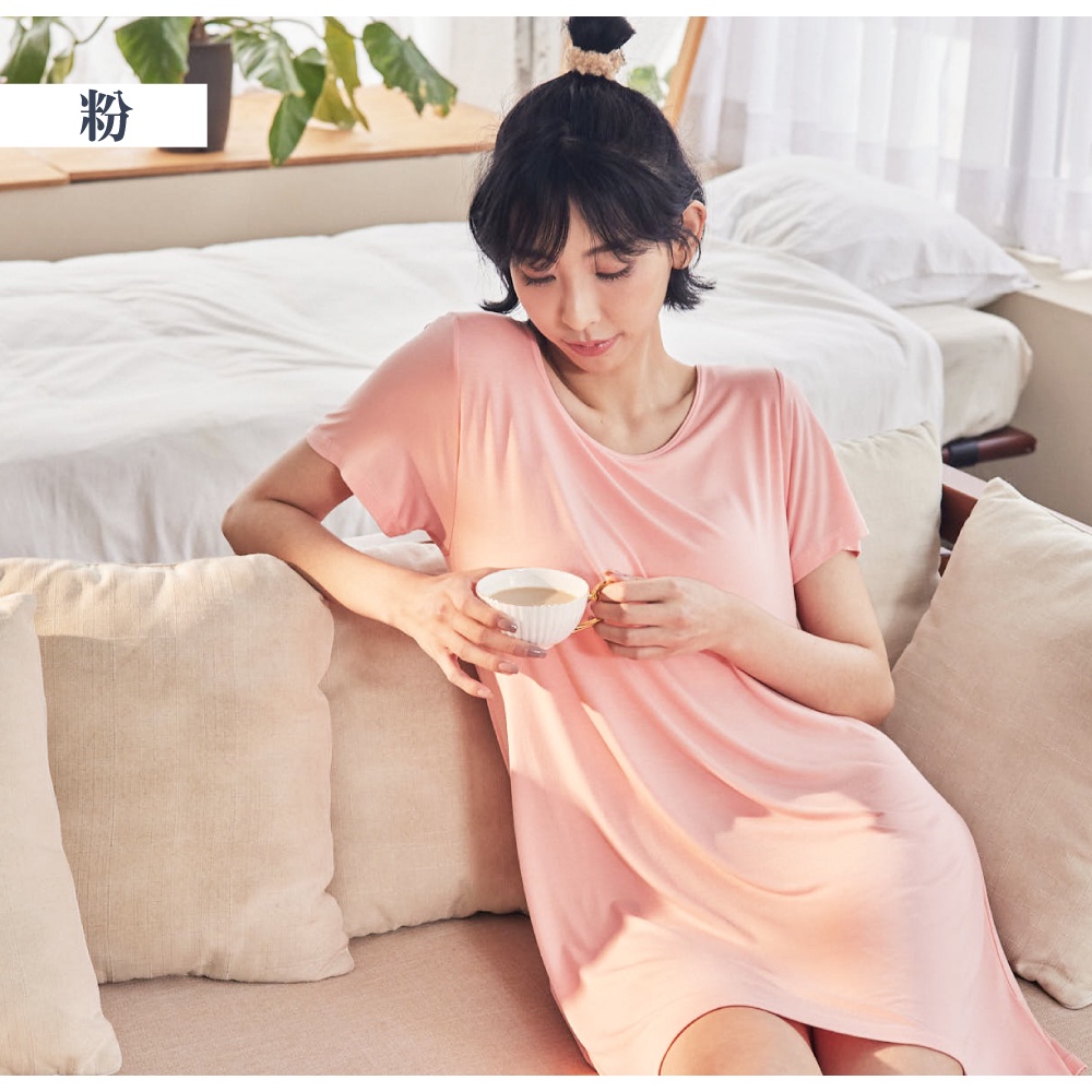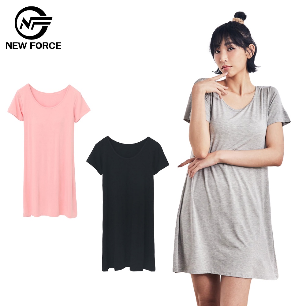 【NEW FORCE】莫代爾素色簡約短袖長版居家服-3色可選