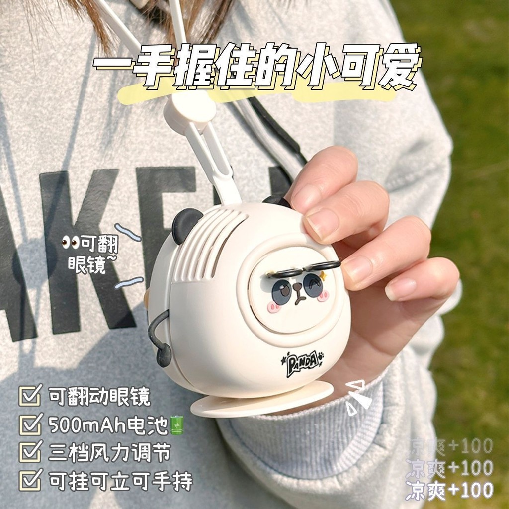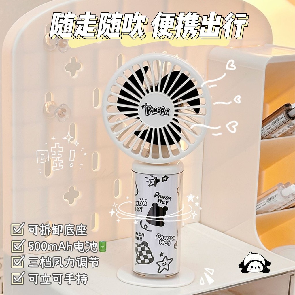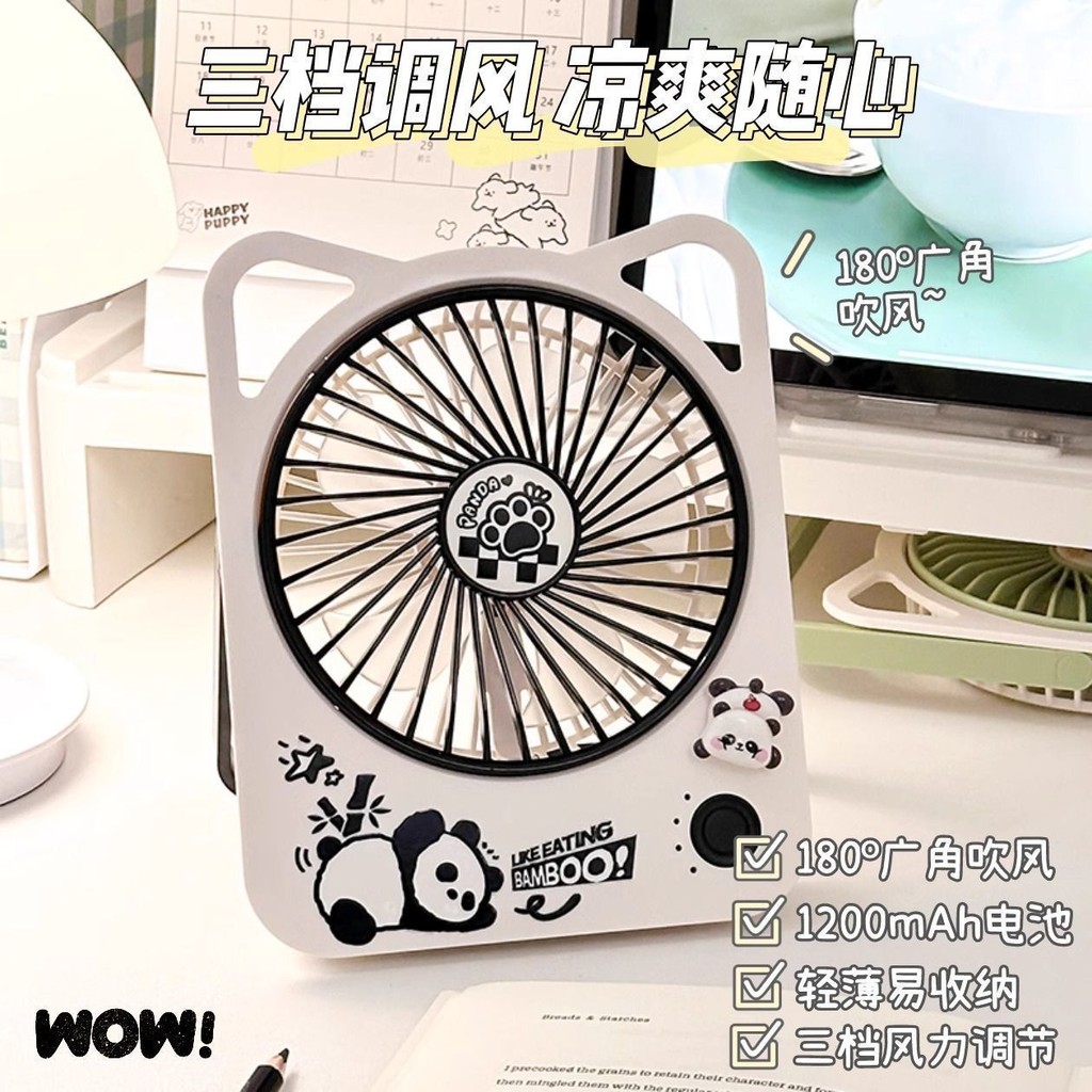 ⭐臺灣出貨-免運⭐【三檔調風】2025新款可愛熊貓卡通風扇USB充電隨身便攜學生大風迷你桌麵風扇 電風扇 手持風扇