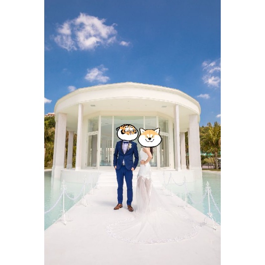 韓版拖尾前短後長蕾絲魚尾輕婚紗