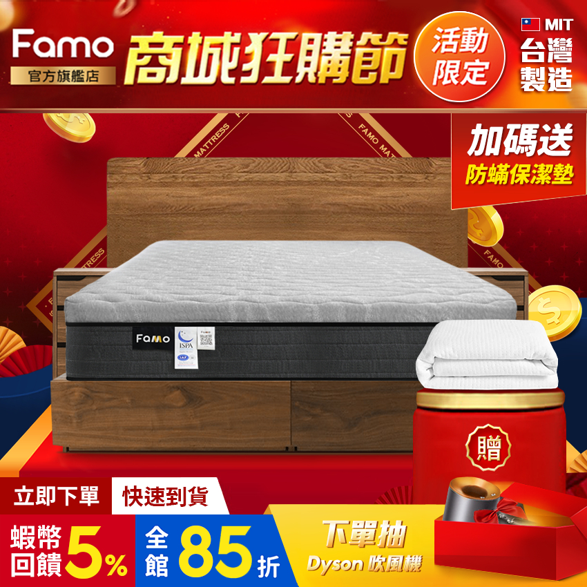 【 Famo 】最硬|石墨烯 Graphefil 比利時乳膠 硬式獨立筒 床墊 泡棉護邊 台灣製造 免運