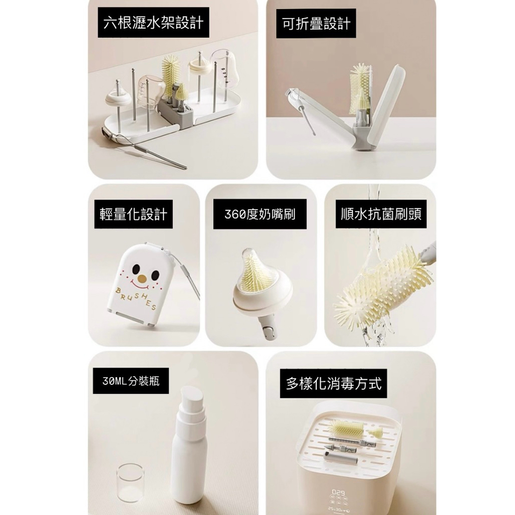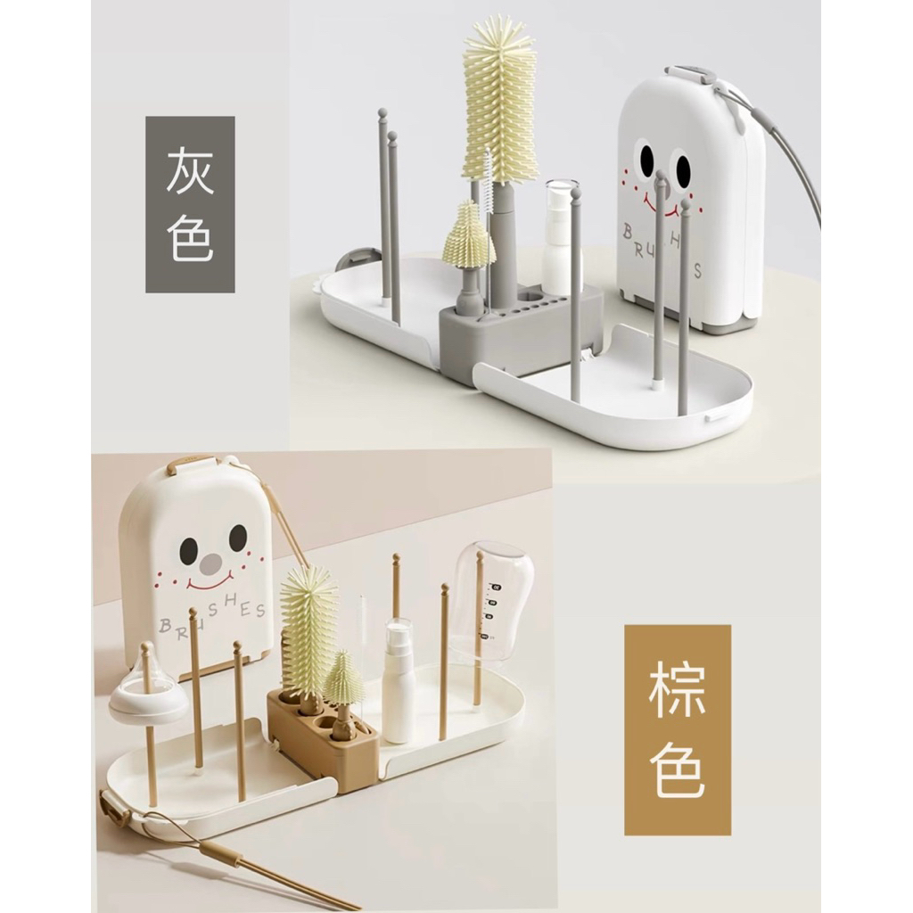 超可愛|Babayoo 攜帶式奶瓶晾乾架(灰色、棕色)