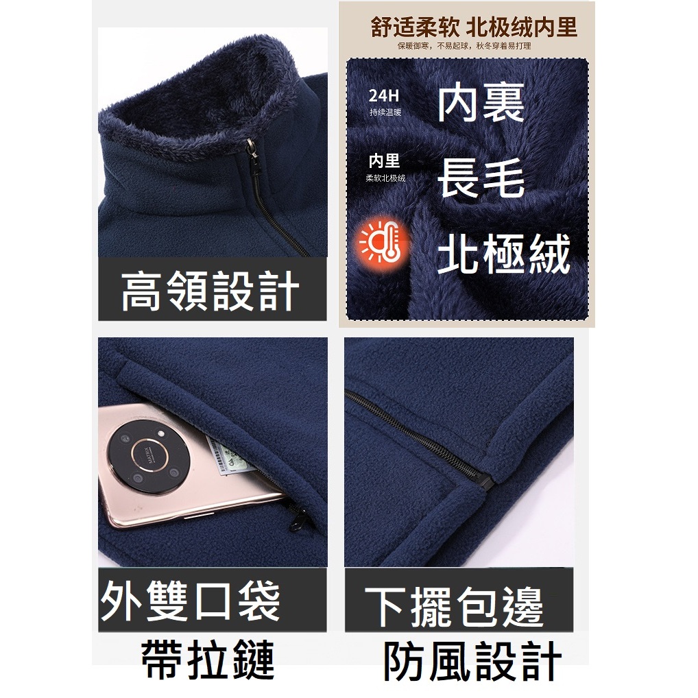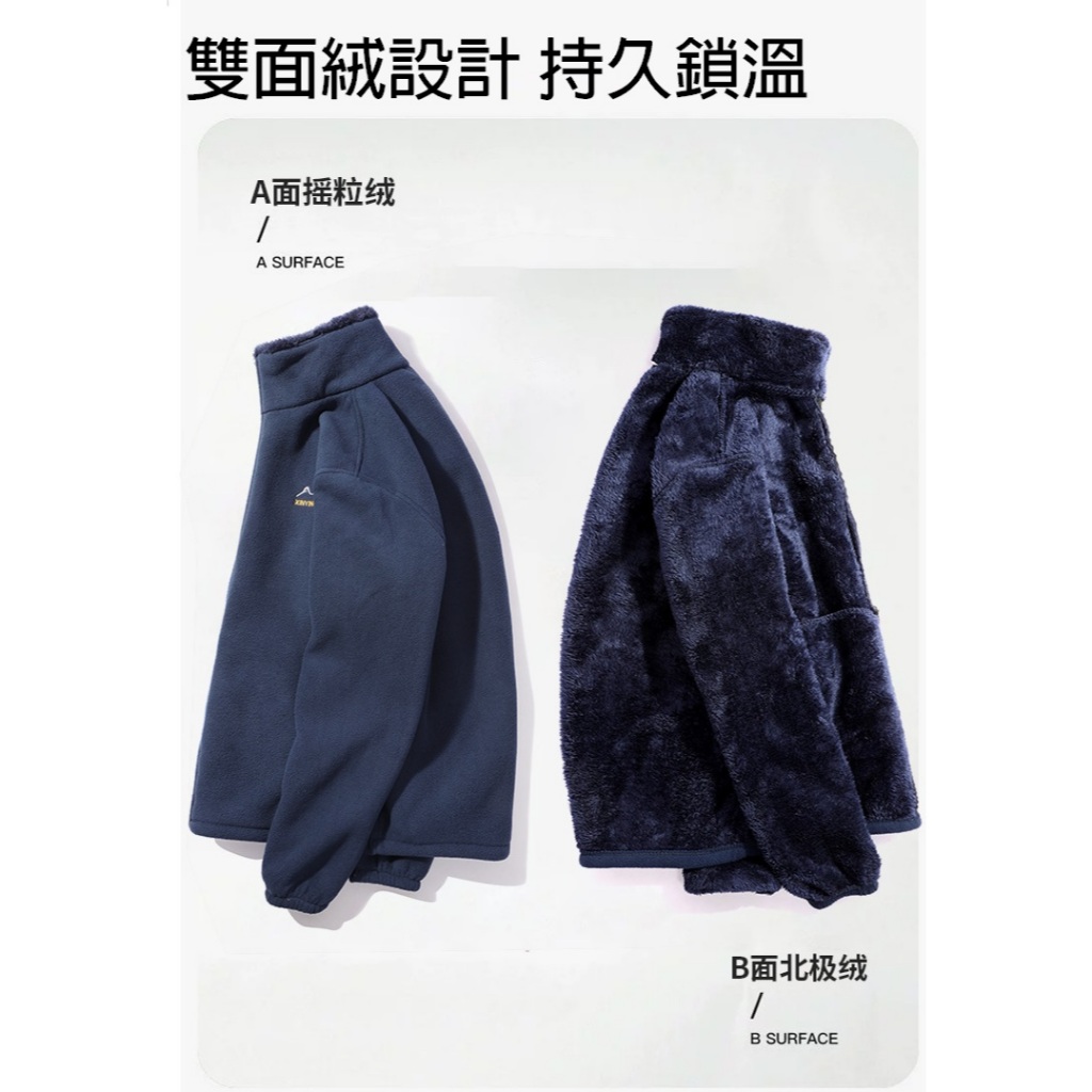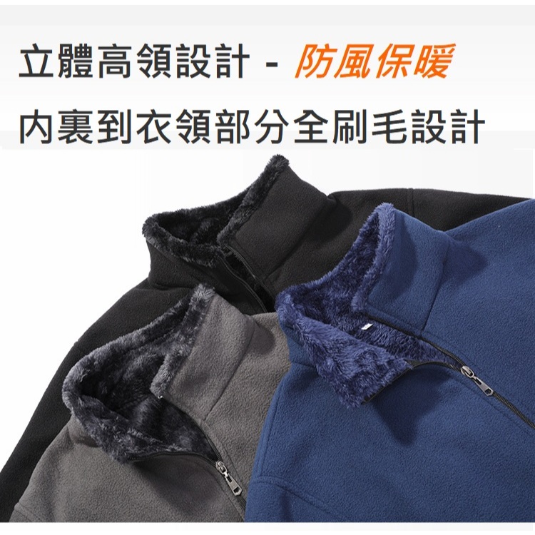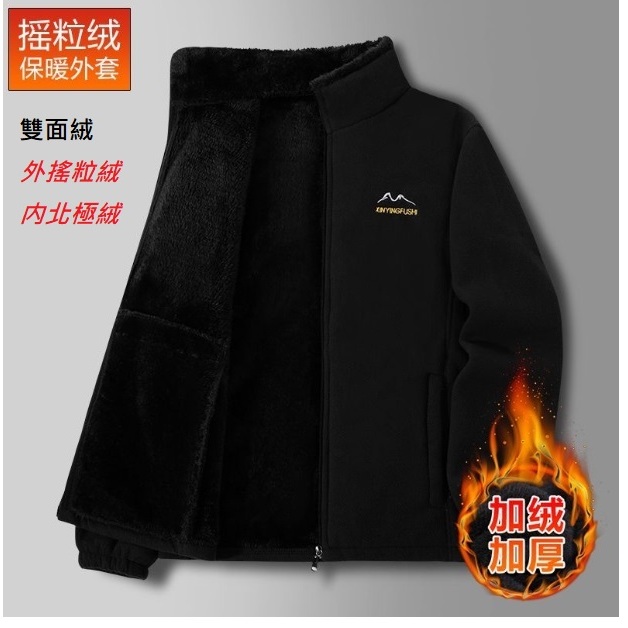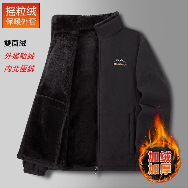 加厚雙面絨外套 高領防風寬鬆刷毛外套 搖粒絨北極絨外套 内外大口袋 男刷毛加絨加厚夾克男士秋冬保暖大衣外套