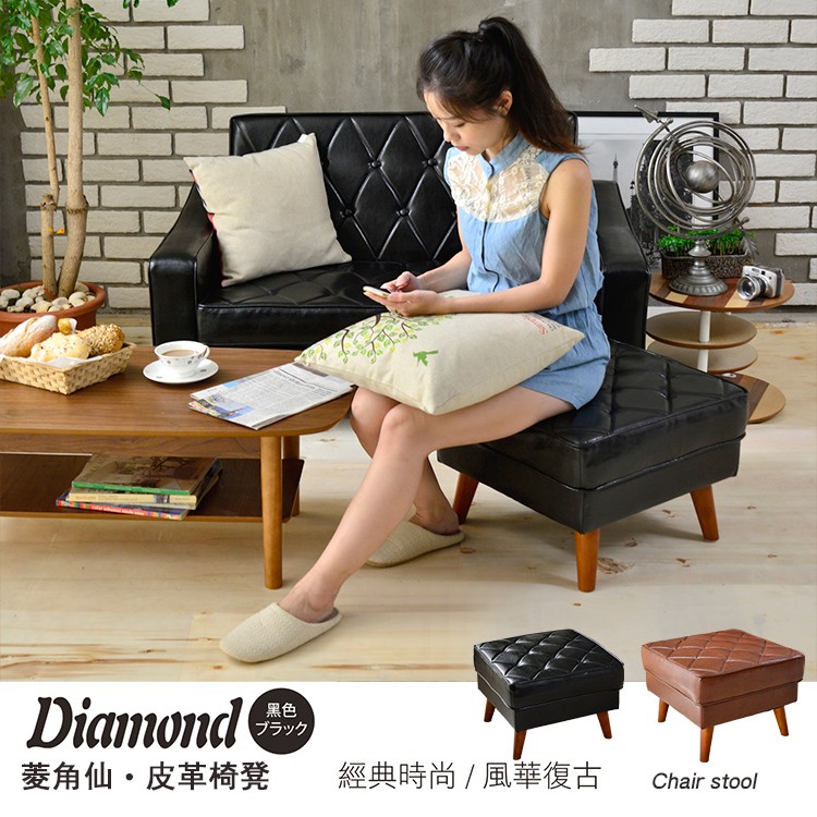 Diamond菱角仙皮革沙發【椅凳】/另有單人+雙人+三人座!(本款為單買椅凳下標區)/腳凳/凳子/矮凳/單人椅