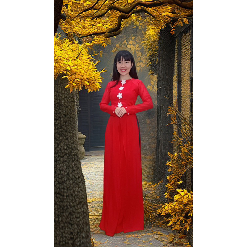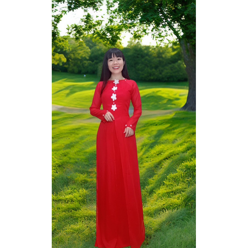 越南國服-越南傳統服裝-Áo dài Việt Nam - áo dài 4 tà xẻ tứ thân hoa nổi