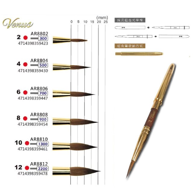 【a.select】馬可威 MACRO WAVE Venus 維納斯旅行純紅貂毛水彩筆 AR88 2~10號