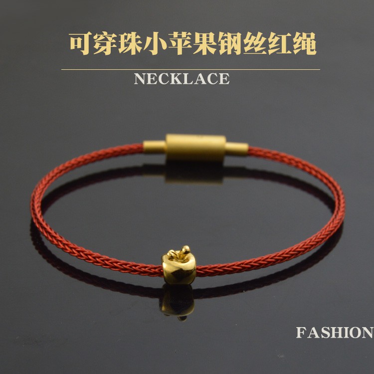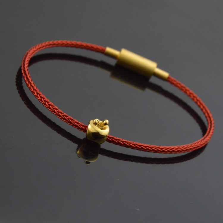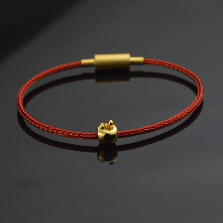 金蘋果小蘋果本命年紅繩可串珠黃金硬金轉運珠手鏈手繩送朋友閨蜜手環飾品今年潮流流行可穿珠
