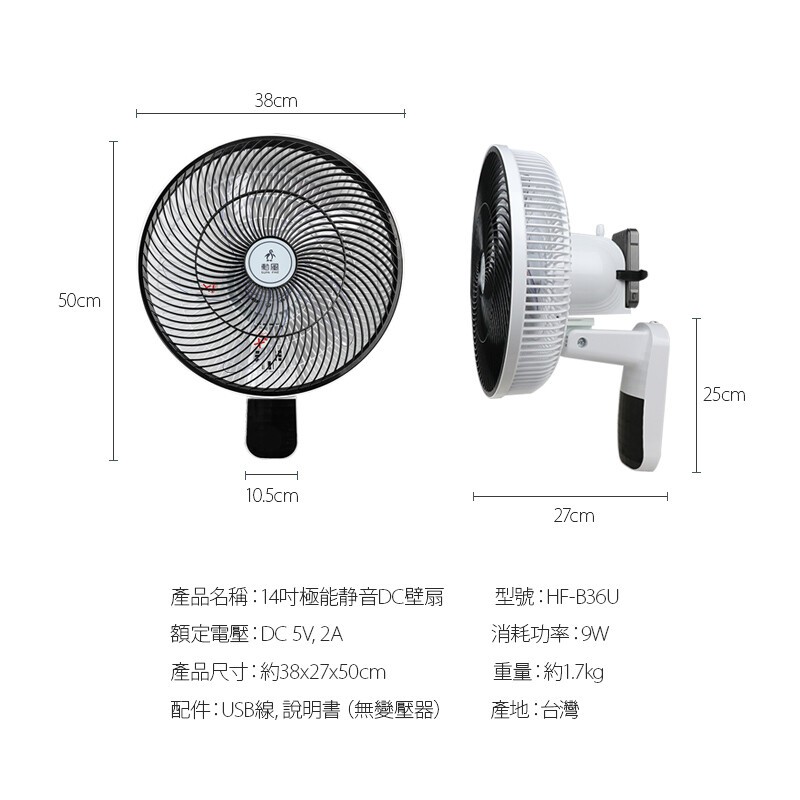 勳風-14吋極能靜音DC壁扇(HF-B36U)