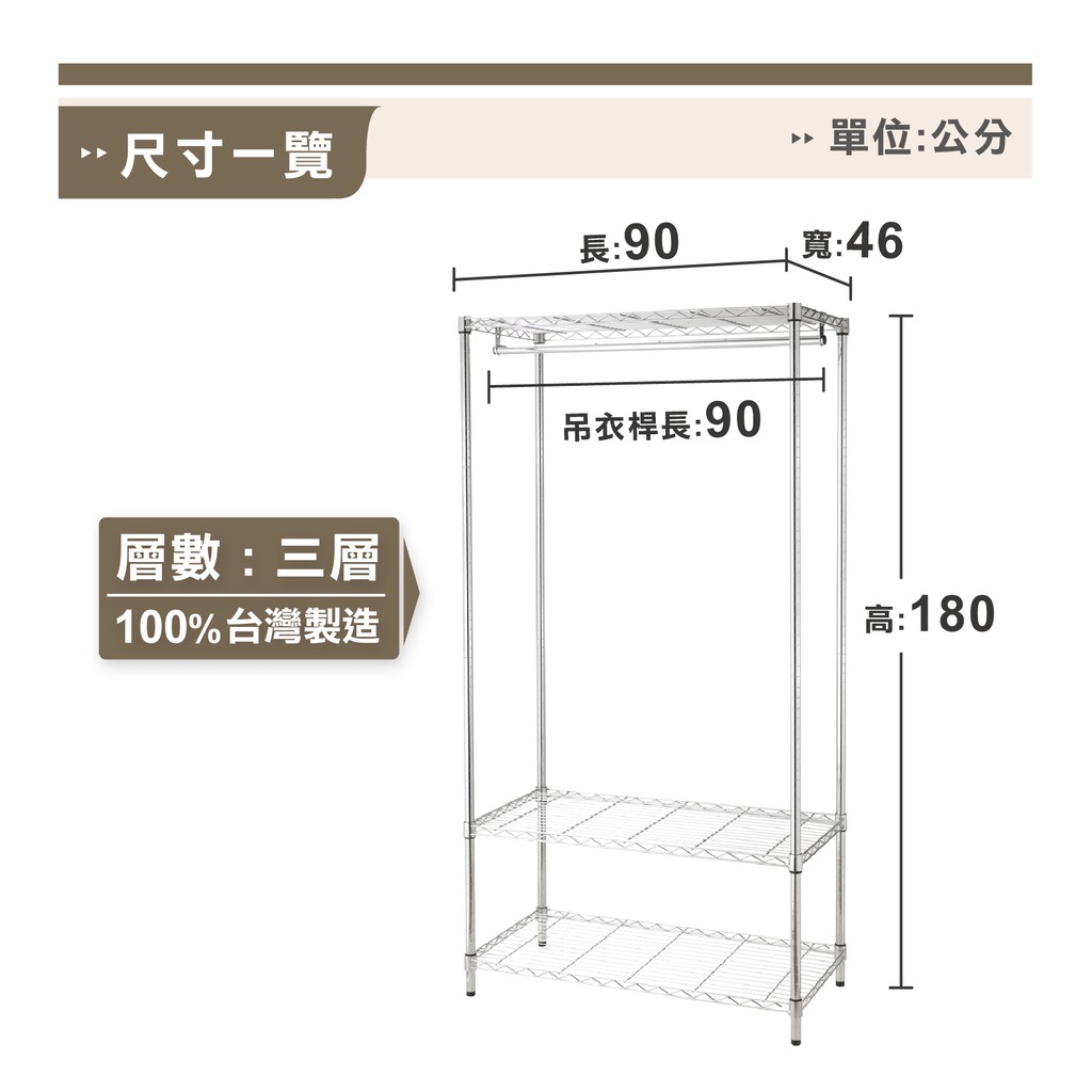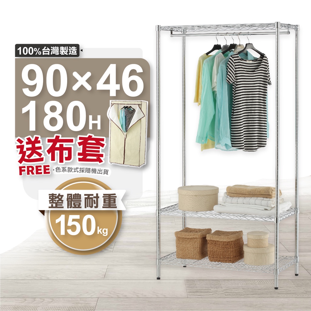 衣櫥收納|90X46X180三層衣櫥架 收納架 鐵架 層架 鐵力士 簡易衣櫃 |整體耐重150kg【KI WISH】