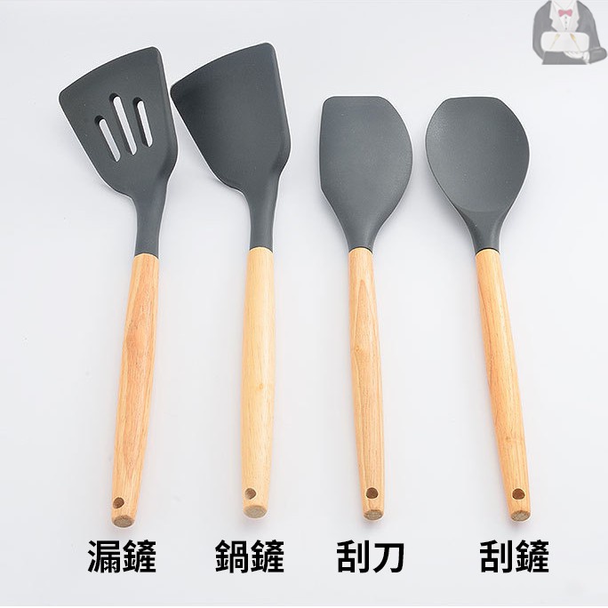 ❤️【矽膠鍋鏟組】 ❤️ 台灣現貨 木柄矽膠廚具 鍋鏟 湯勺 漏勺 刮刀 麵勺 耐高溫 172