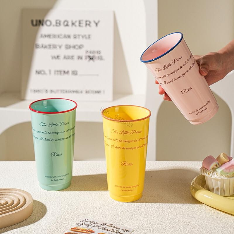 🔥桃園出貨🔥 ♡複古馬剋杯♡ 捨裏ins博主衕款複古紙杯造型字母陶瓷手握高筒 馬剋杯 隨手咖啡杯