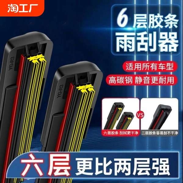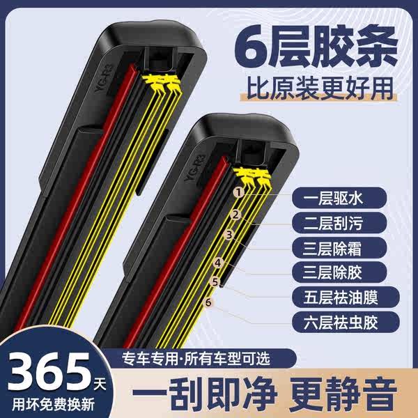 適用六膠條汽車雨刮器無骨前雨刮片靜音雙雨刷思域星越朗逸凱美瑞