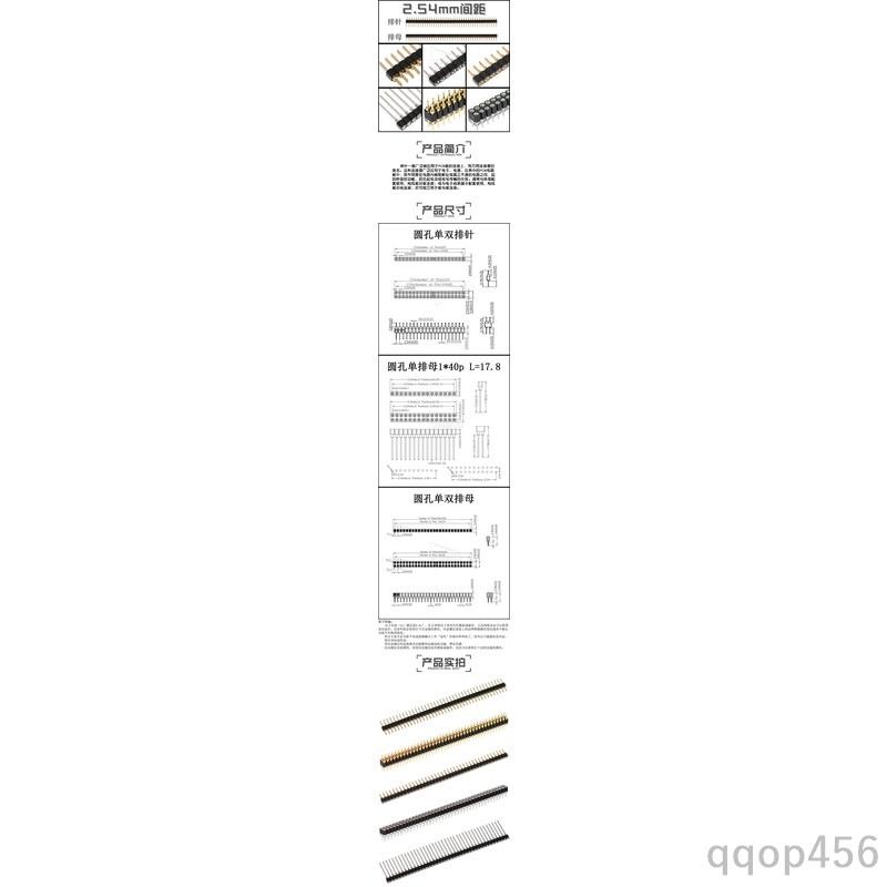 電子配件💯圓孔排針排母2.54mm間距單排1*40p雙排2*40p圓針鍍金雙排針