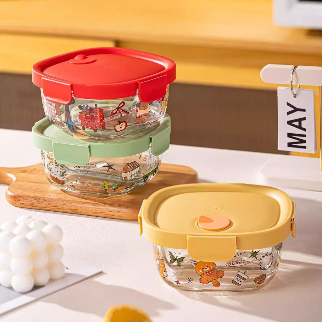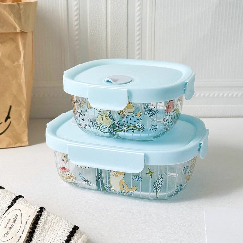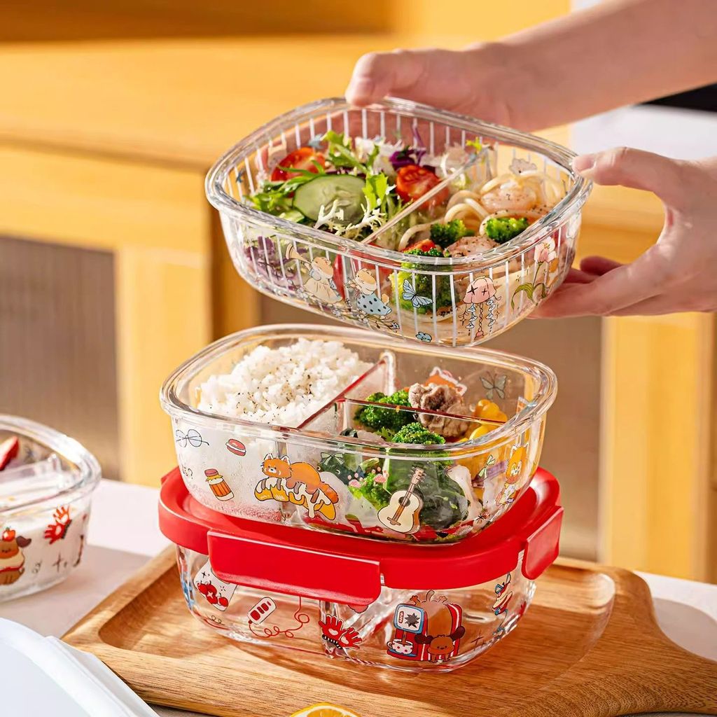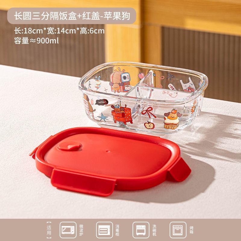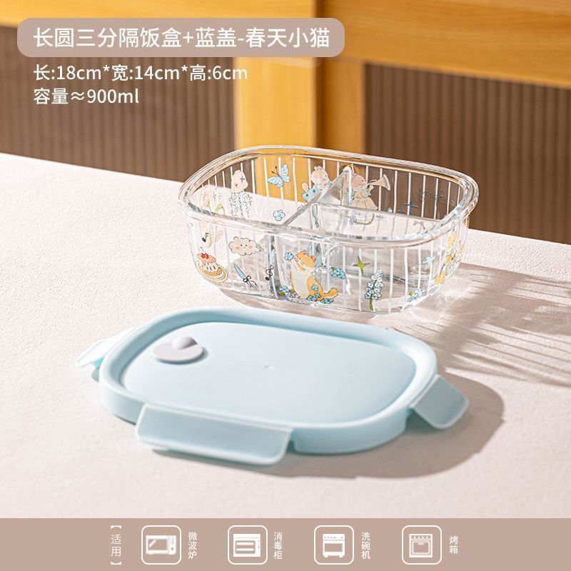 可愛玻璃飯盒食品級保鮮盒上班族微波爐加熱專用碗兒童分隔便當盒