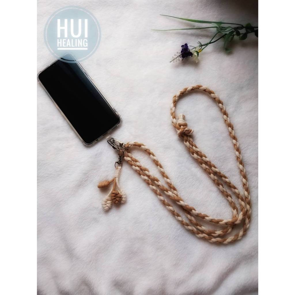 🍒惠療癒★編織手作🥛來杯鮮奶茶 🌿可調整長度雙色編織手機掛繩 (脖掛式 / 斜背式)