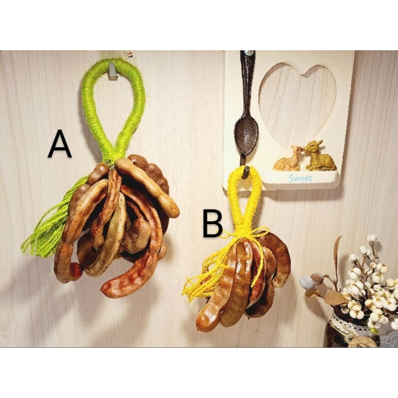 zakka鄉村雜貨,天然羅望子種子掛串,天然羅忘子麻繩吊飾,象徵年年豐收的幸運麻繩掛飾,純手作玄關吊飾